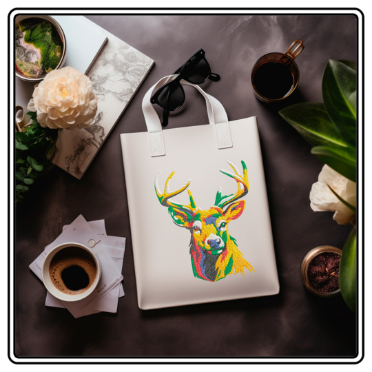 Ein bunter Elch als Stickdatei, welche ein Aquarellstil andeutet ist sehr besonders und veredelt alle deine Stücke mit einem besonderen Motiv und macht es zu einem wirklichen Highlight. Perfekt kommen die Stickdateien auf Taschen, Kissen oder Kleidung zur Geltung. Da die Datei euch durchgehend ist eigentlich sie sich auch perfekt für Patches.