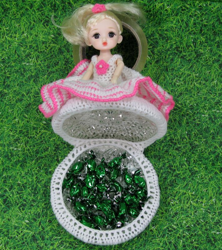 Die Bonboniere Schmuckschale in mehreren Teile gehäkelt.