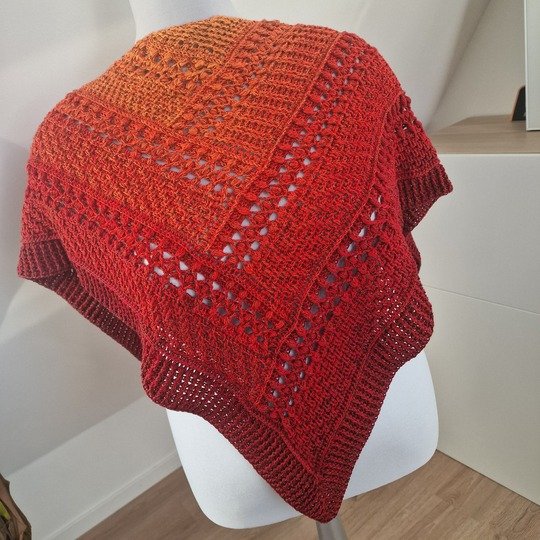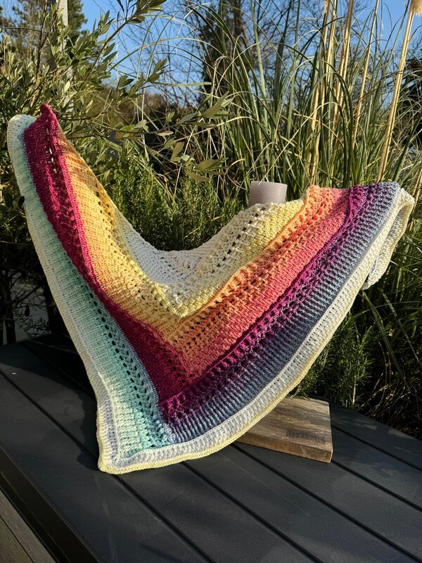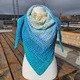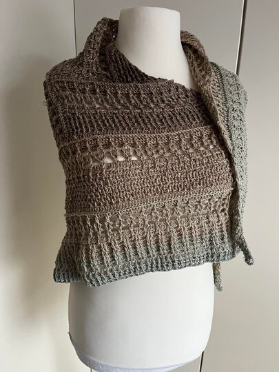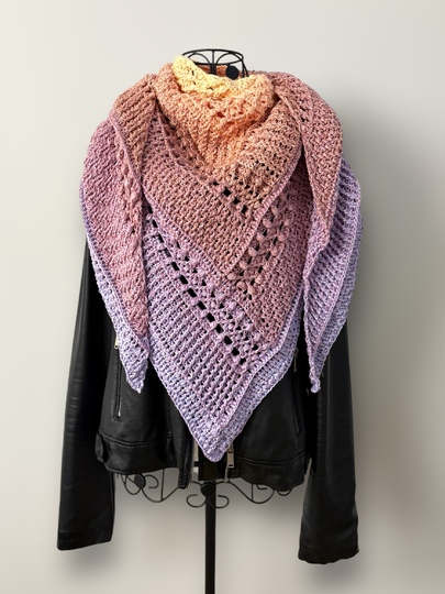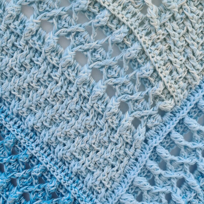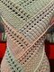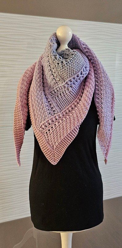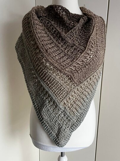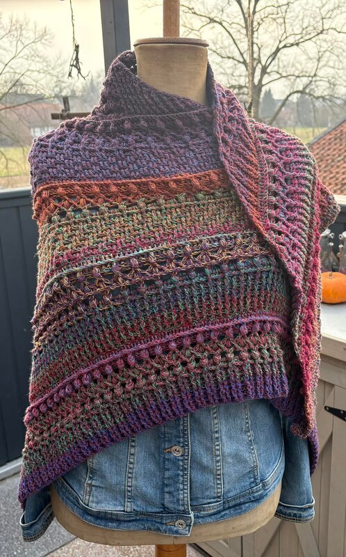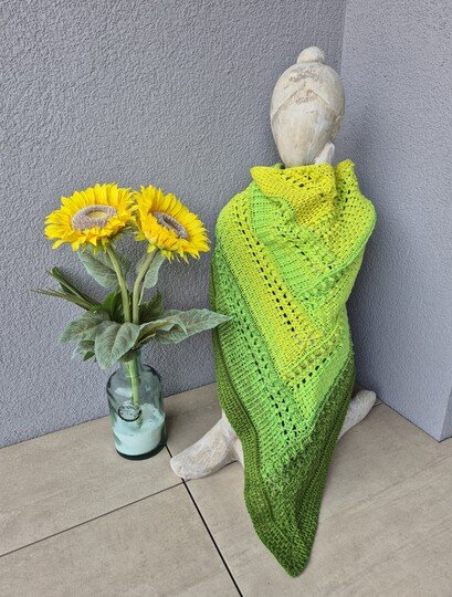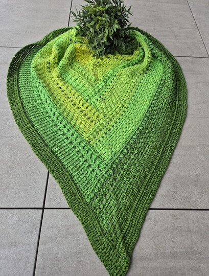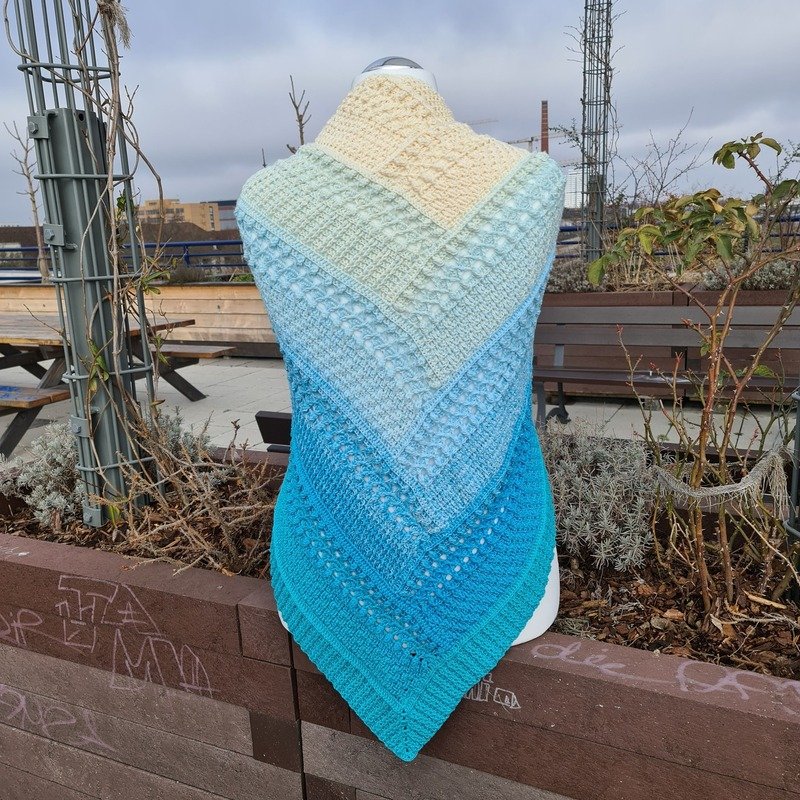 Das Tuch kann in jeder beliebigen Größe gehäkelt werden, da sich die Reihen wiederholen. Bitte beachte, wenn du eine andere Wolle verwendest, eine andere Nadelstärke, oder generelle lockerer/fester häkelst, kann die Größe variieren.