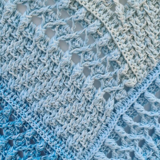 Valeria ist eines der beliebten Tücher aus der Reihe der „Tücher mit dem Dreh“. Dieses Tuch kann in jeder beliebigen Größe gehäkelt werden. Was es zusätzlich zu seinem ganz besonderen Werk macht, ist, dass man die einzelnen Muster beliebig wählen und kombinieren kann – so kann man sich sein eigenes, individuelles Tuch designen, ein Unikat, das definitiv ein Blick fang ist!