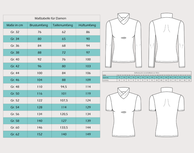 Im Schnittmuster enthalten sind die Damengrößen 32 - 62.