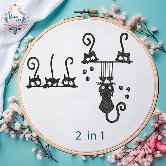 Tauchen Sie ein in die Welt der entzückenden Fellnasen mit unserer exklusiven Maschinenstickdatei ein. Die drei frechen Katzen ist ein Ausdruck von purer Katzenliebe! Bringen Sie mit dieser bezaubernden Stickdatei die Magie der Katzenwelt in Ihre Projekte.