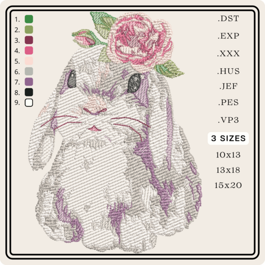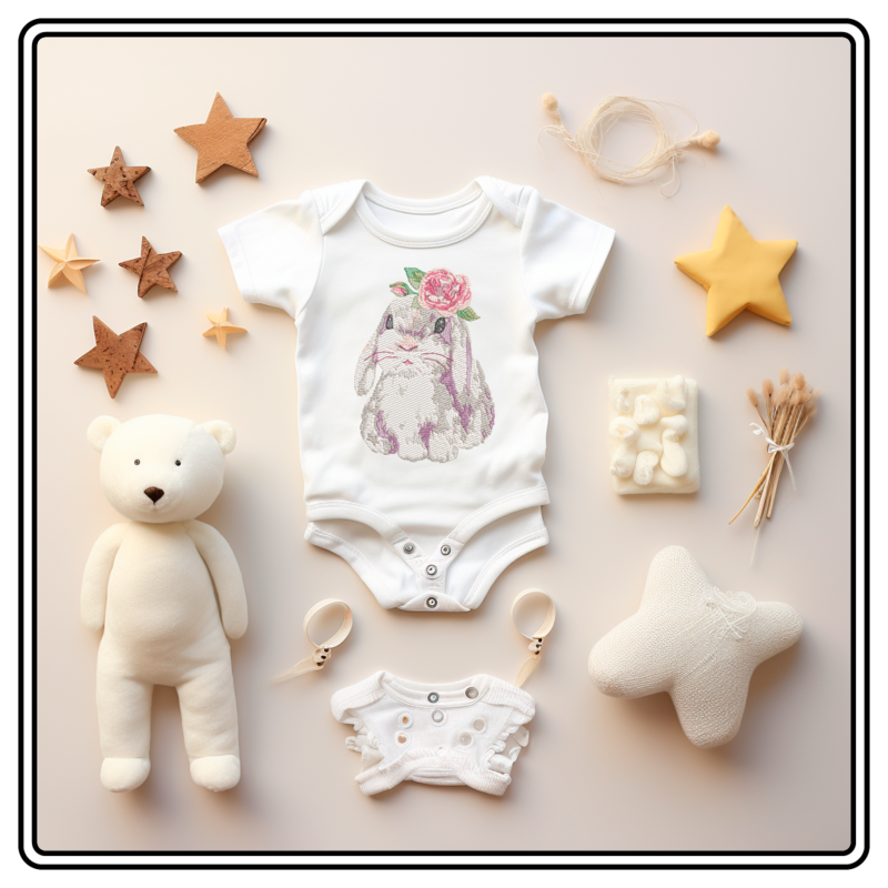 Ein niedlicher Hase mit verspielten Blumen auf dem Kopf welches ein Aquarell andeutet ist sehr edel und veredelt alle deine Stücke mit einem besonderen Motiv und macht es zu einem wirklichen Highlight.