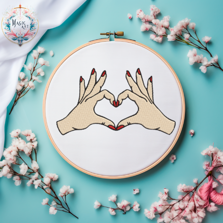Tauchen Sie ein in die Welt der Liebe mit unserer zauberhaften Stickdatei für den Valentinstag – ein romantisches Design, das Ihre Handarbeit in eine wahre Liebeserklärung verwandelt! Diese Stickvorlage zeigt zwei Hände, die ein Herz formen, und ist die perfekte Art, Ihre Gefühle für einen geliebten Menschen auszudrücken.