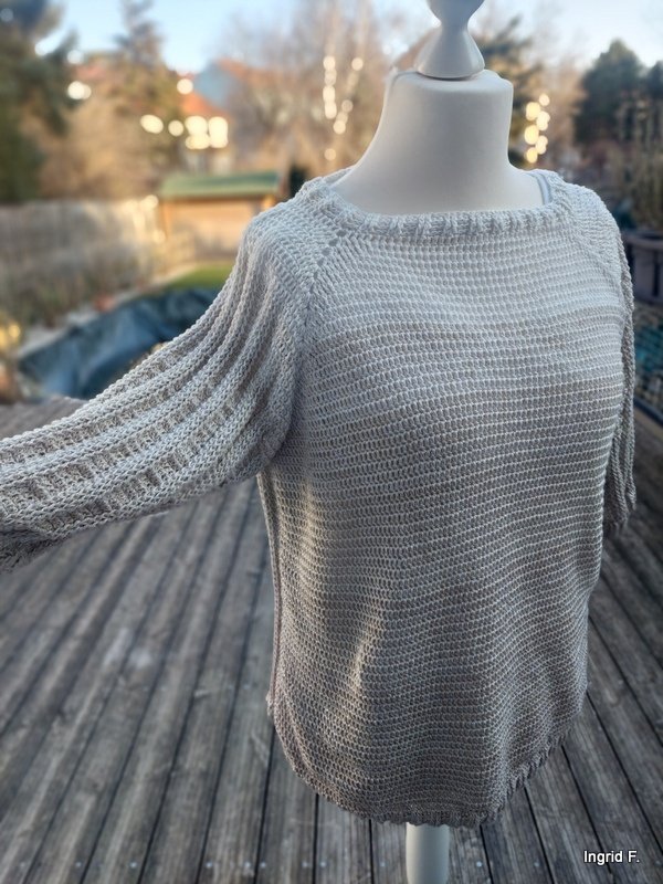 Der Pullover kann mit verschiedenen Garnen und Farben gehäkelt werden, sodass du ihn ganz nach deinen Wünschen gestalten kannst.