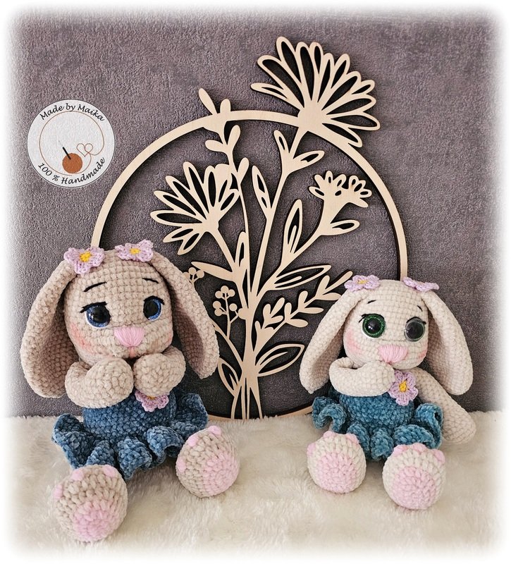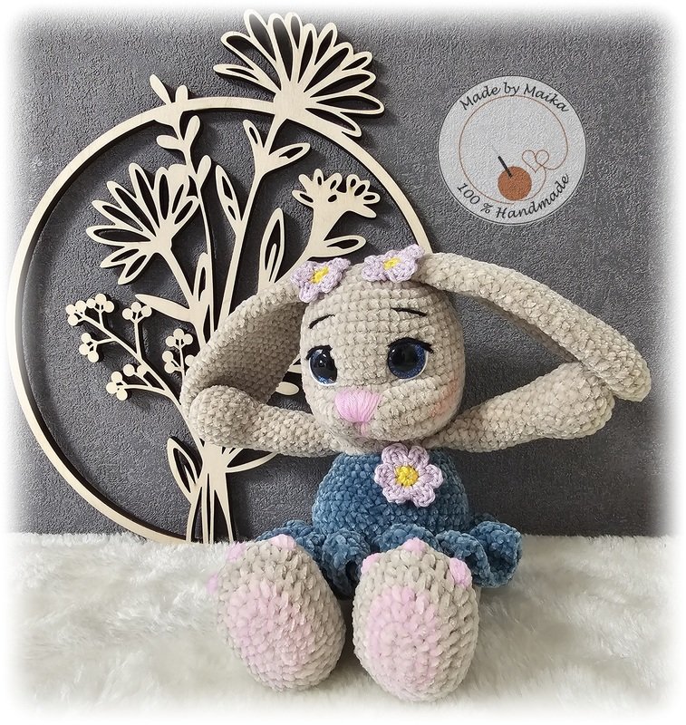 Mit der angebenen Wolle und Häkelnadel wird das Häschen ca. 26cm. Dies kann aber immer vaiieren, jeder häkelt anders, fester oder lockere.