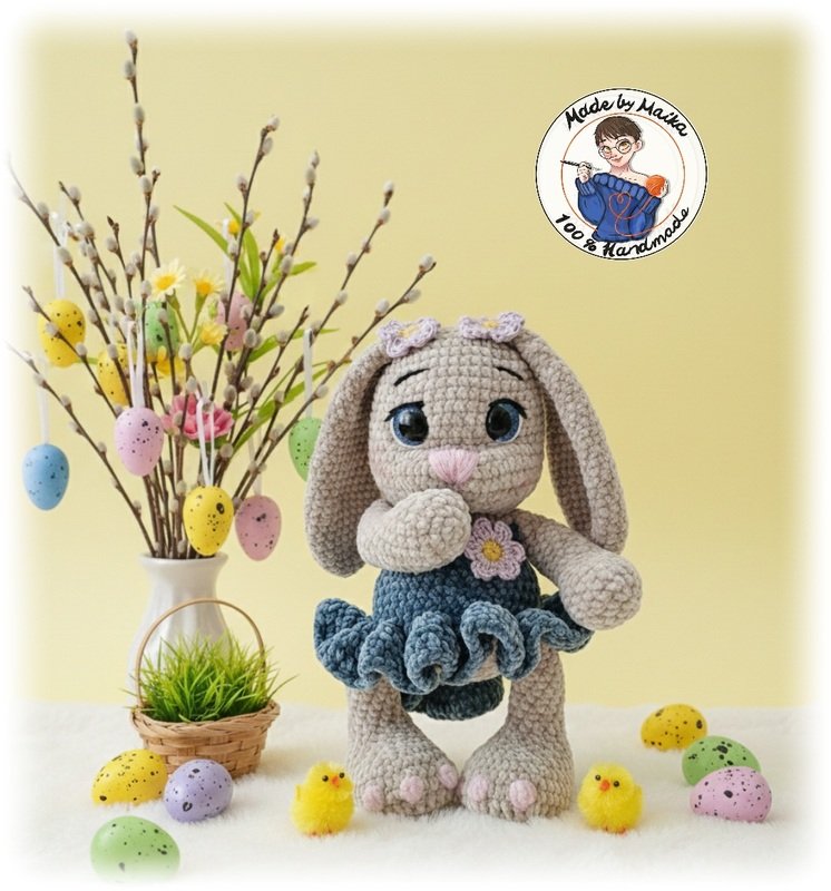 Schaut mal, wer hier gehoppelt kommt! Ein kleines Häschen mit den größten Kulleraugen, die ihr je gesehen habt. Sie ist nicht nur super kuschlig, sondern auch ein treuer Begleiter für Groß und Klein. Perfekt für der Osterkörbchen, Kinderzimmer oder einfach als süßer Glücksbringer.