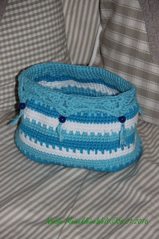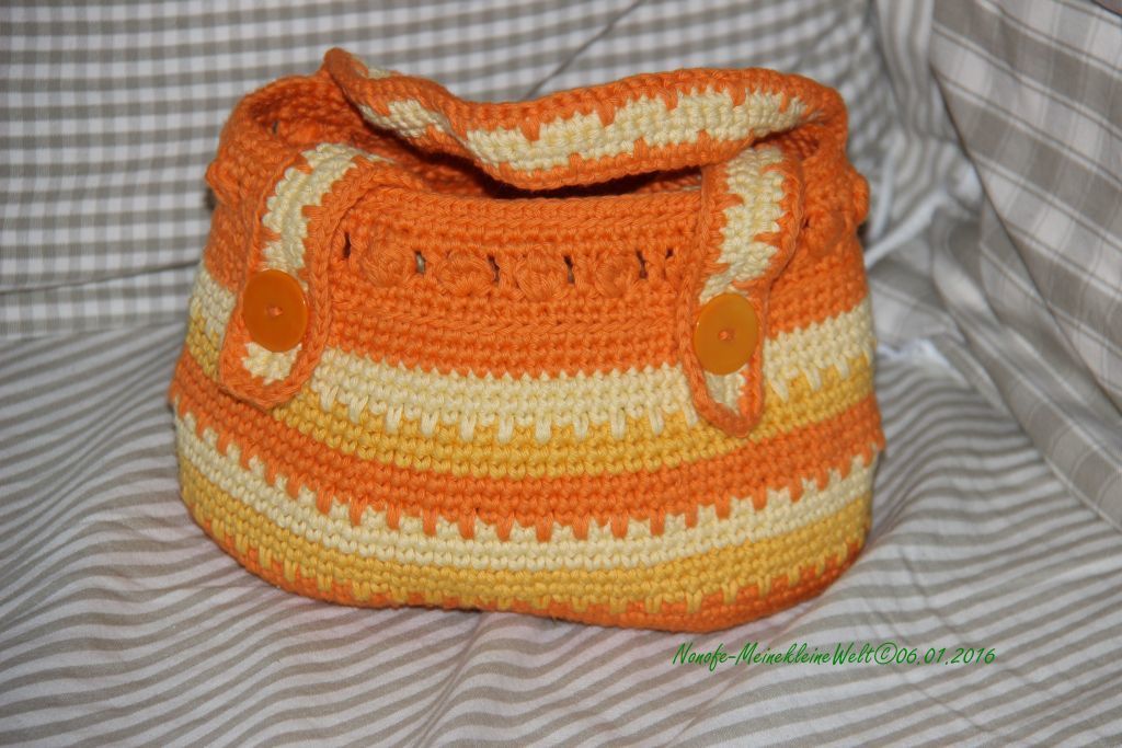 Ihr findet hier eine Häkelanleitung für eine Kindertasche mit langem Henkel, kurzem Henkel ( auch als Osterkörbchen nutzbar) und ein Körbchen. Für das Häkeln der Taschen braucht ihr Kenntnisse über Luftmaschen, Kettmaschen, feste Maschen, tiefereinstechende feste Maschen, Doppelstäbchen und Noppen. Eine kleine Anleitung über Noppen befindet sich in der Anleitung.