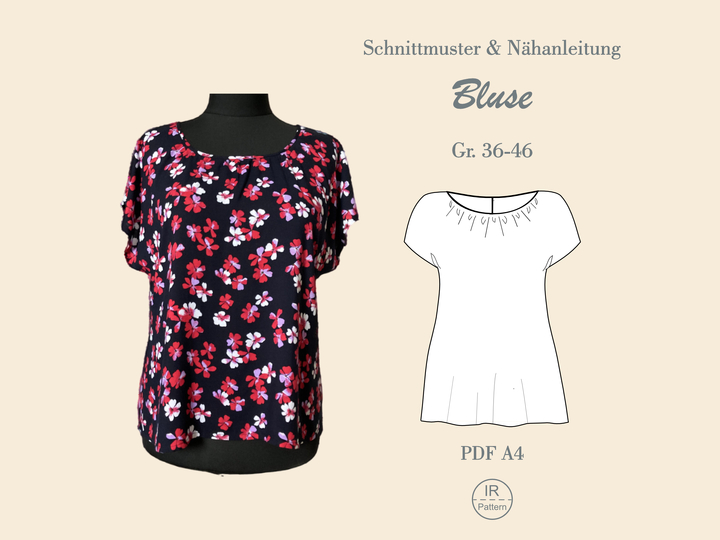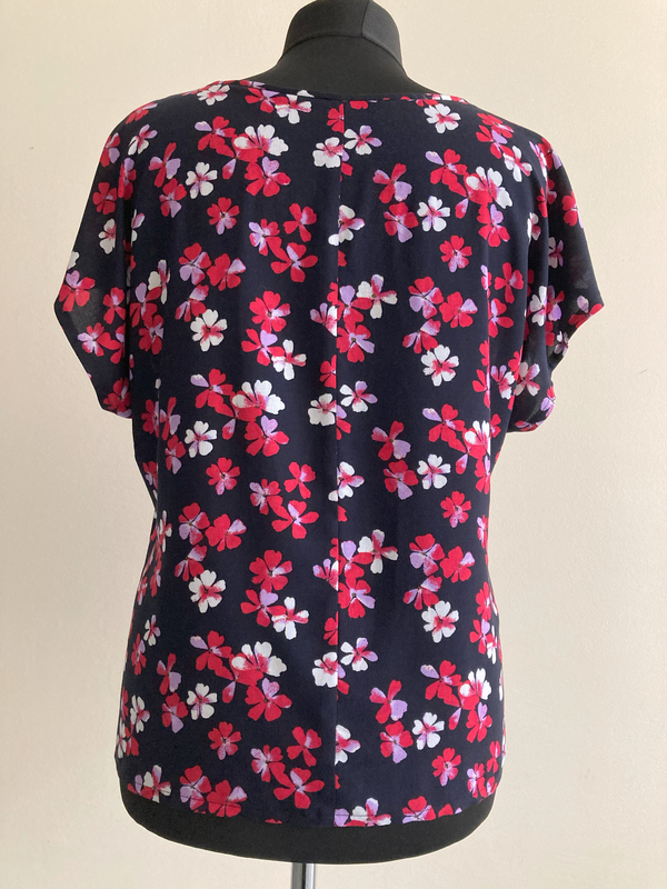 Die Bluse hat einen Rundhalsausschnitt mit Kräuselung vorne, die einen tollen femininen Look verleiht.