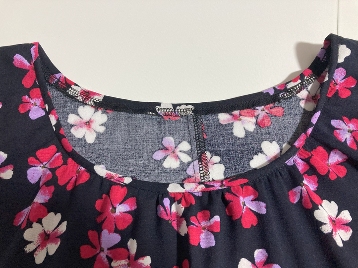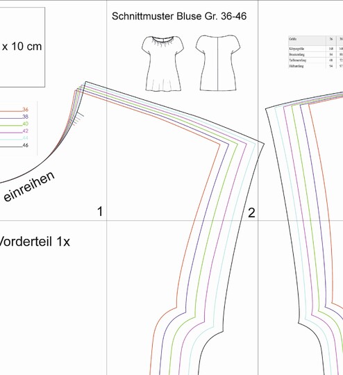 Insgesamt Halsausschnitt vorne auf 34,5 cm einreihen.