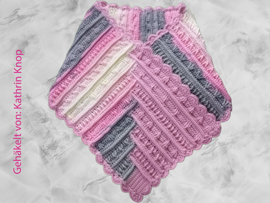 Du liebst das dynamische Treppenstufen-Muster aus meinem Würfelpulli No. 4? Dann wirst du diesen Schulterwärmer lieben!