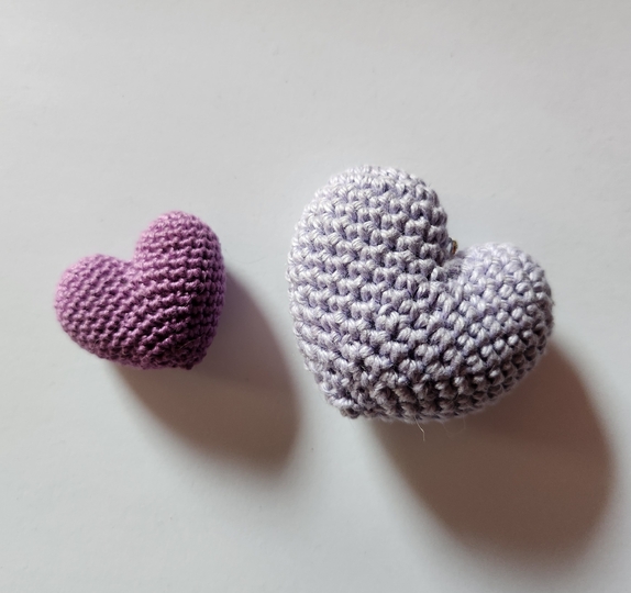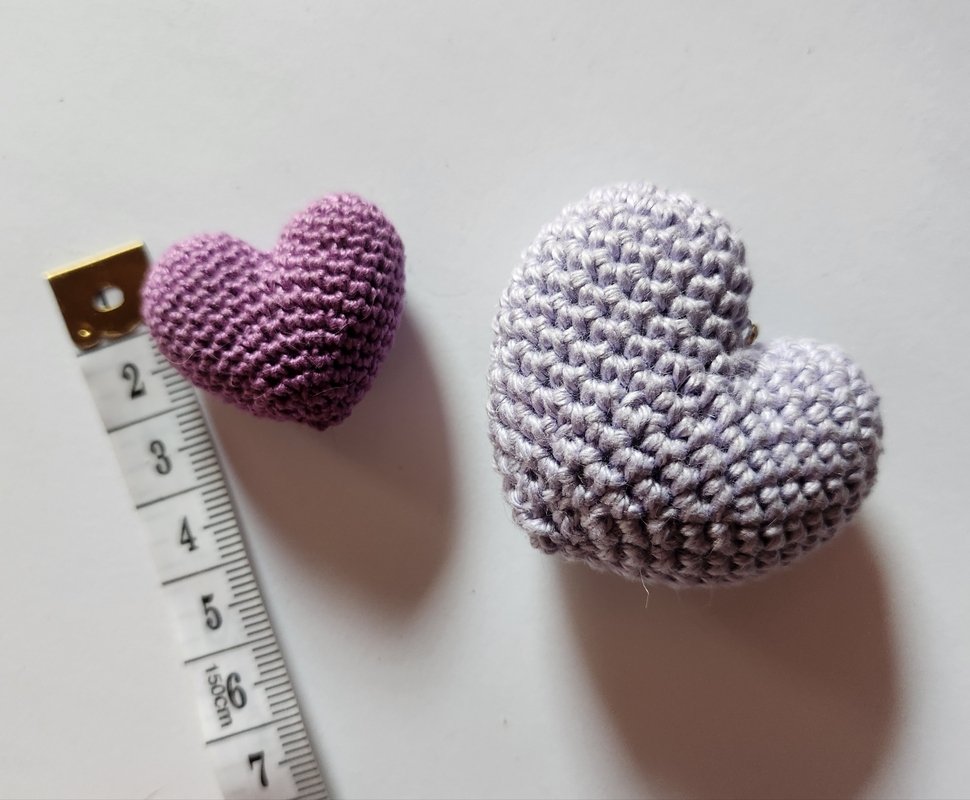 Bei dem in der Anleitung verwendeten Garnen wird das Herz einmal ca. 3 cm oder ca 5,5 cm groß.