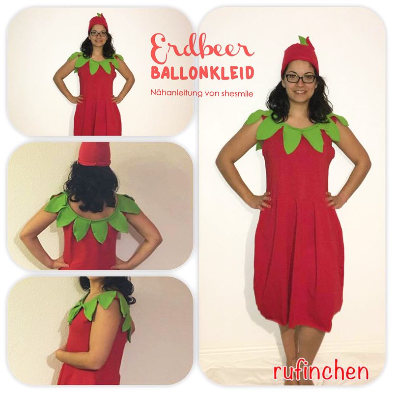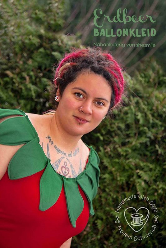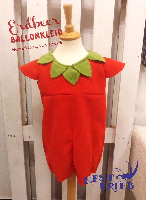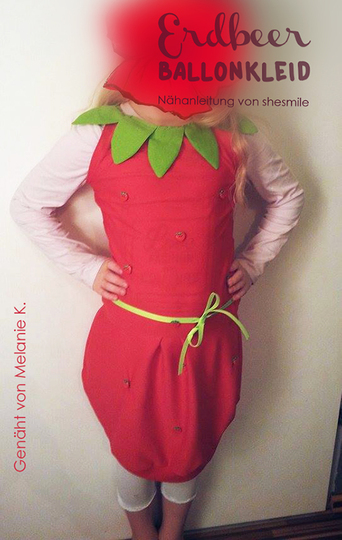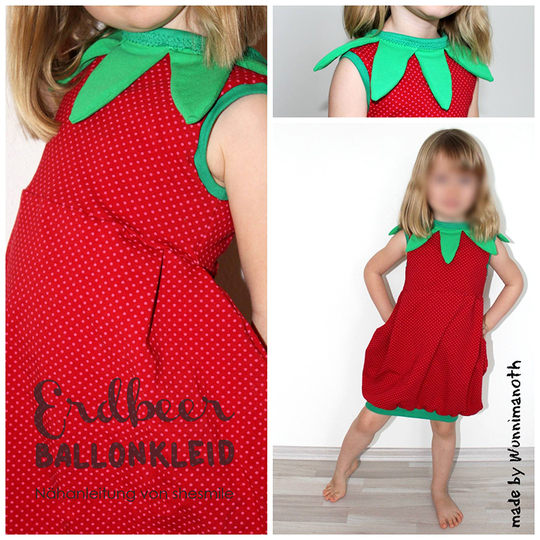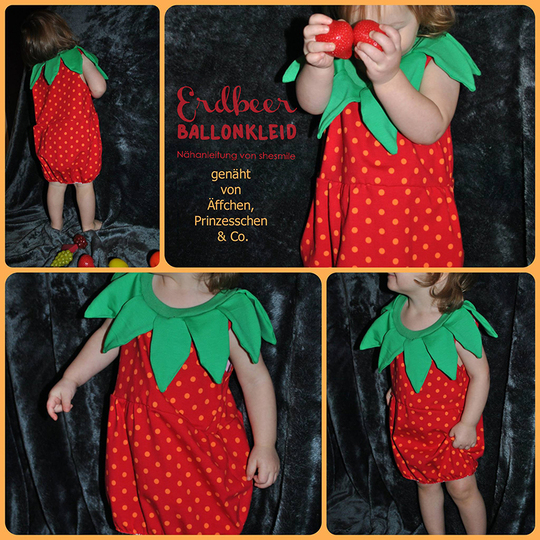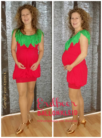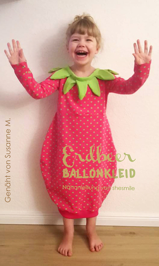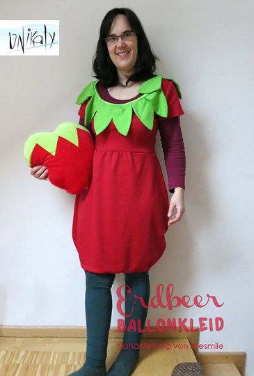 Nähanleitung für alle Größen gestaltet als PDF-E-Book für ein fruchtiges Ballonkleid im Erdbeer-Design passend für alle Größen und jede Figur. Auch für Schwangere.