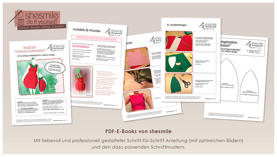 PDF-E-Books von shesmile: Diese leicht verständliche Schritt-für-Schritt-Anleitung mit vielen Fotos ist auch für Nähanfänger geeignet, denn die sehr ausführliche Fotoanleitungen begleitet dich bei jedem Schritt.
