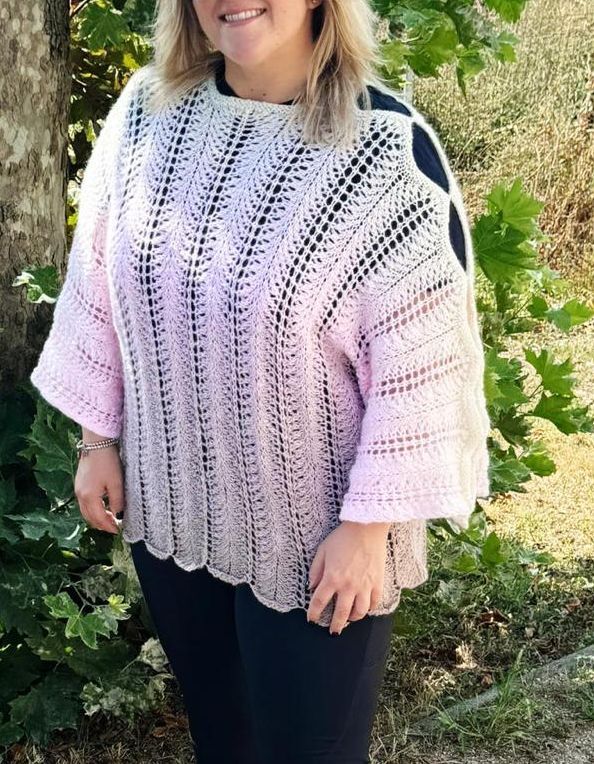 Du bekommst eine ausführliche Anleitung für die romantische Tunika Poema mit Schulter und Ärmel Cut-Outs in verschiedenen Gr von 46/48 - 58/60 und die Materialangaben. Dieses Modell ist luftig leicht, wiegt nur 400 g und ist perfekt für den Frühling und Sommer.