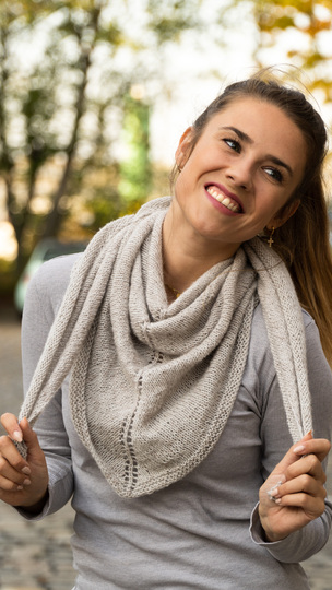 Dieses elegante Dreieckstuch vereint zeitlose Schönheit mit einfacher Stricktechnik. Es wird nicht klassisch von unten nach oben gestrickt, sondern wächst direkt in Dreiecksform. Perfekt für Anfänger, da nur rechte, linke Maschen und Umschläge benötigt werden. Die Schenkel des Tuchs werden von einem zarten krausrechten Rand verziert, welcher für einen stilvollen Abschluss sorgt. Ein Accessoire, das sich vielseitig kombinieren lässt!