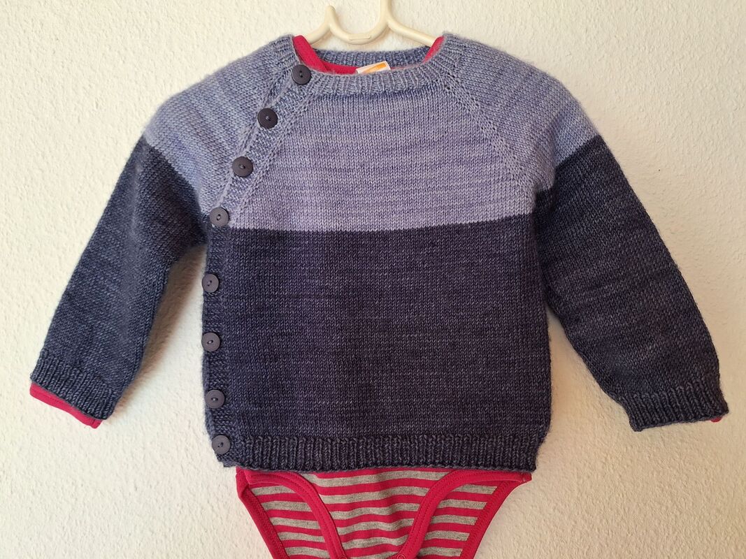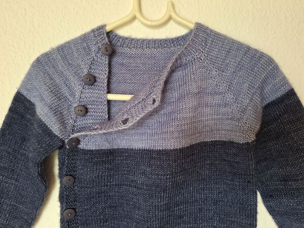 Baby-/Kleinkindjäckchen , das seitlich geknöpft wird, ein sog. Schlüttli , zu stricken.