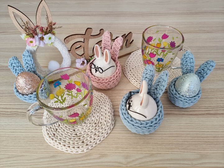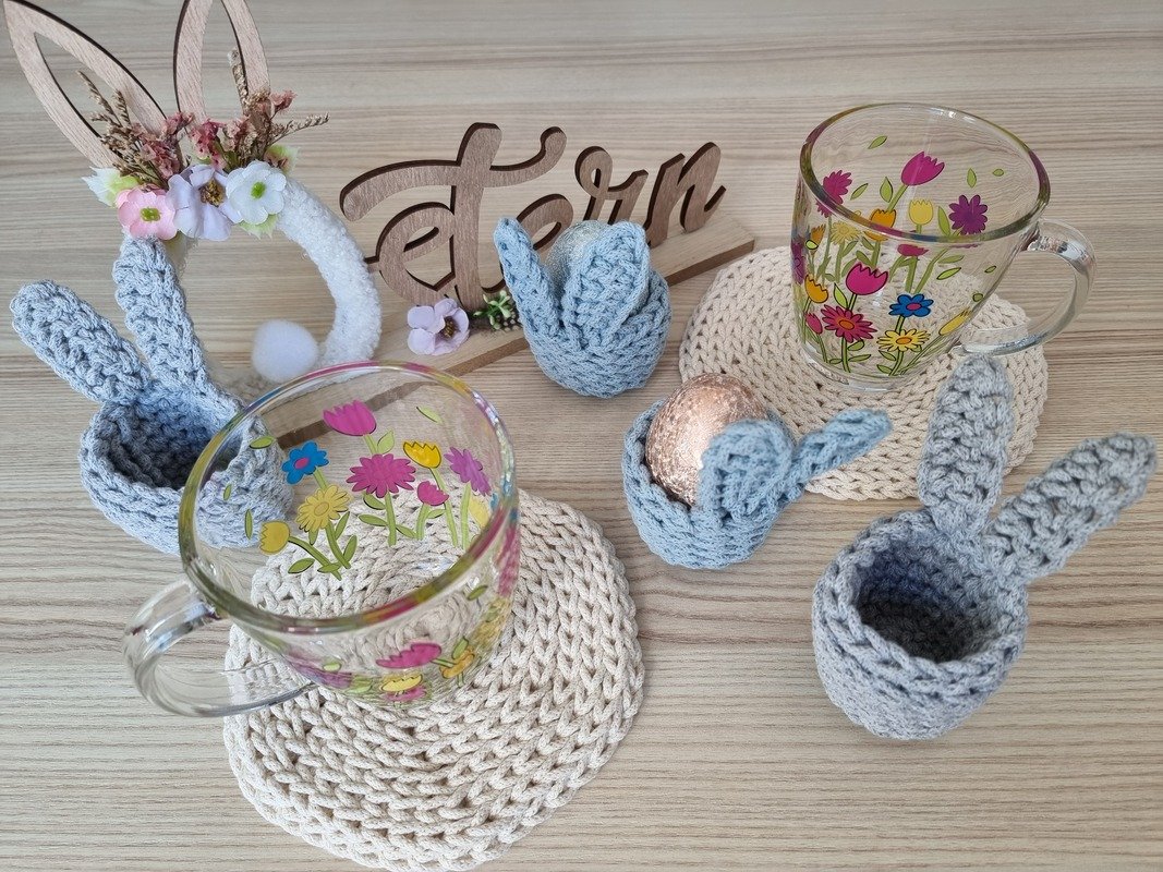 Die einfach gehäkelte Eierbecher machen sich super als Osterdeko für Frühstückstisch oder Ostergeschenk.