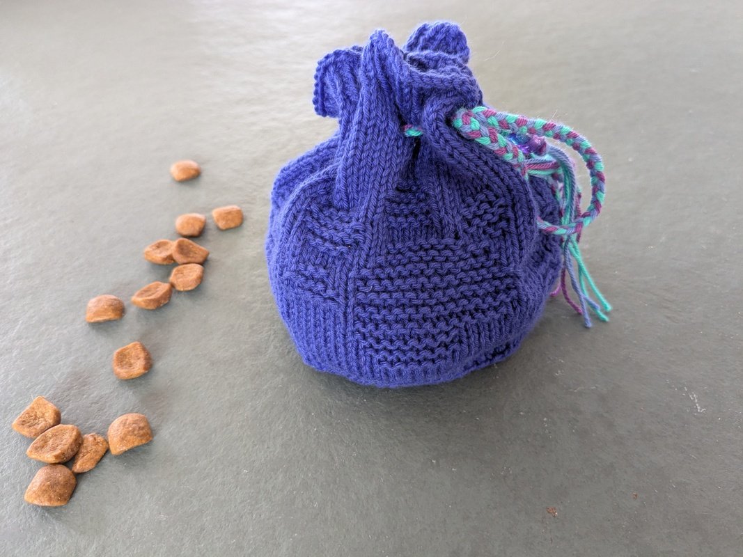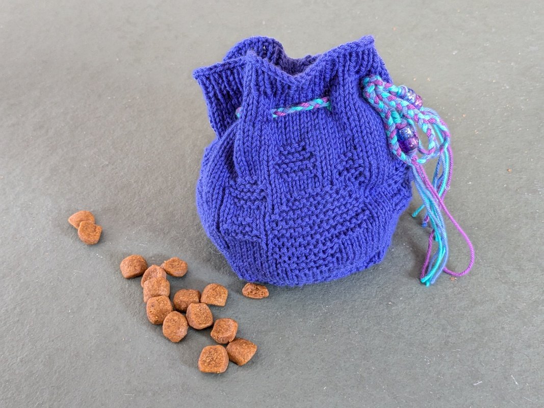 Mit diesem Leckerli-Beutel kannst Du Dir selbst oder einem befreundeten Hundebesitzer eine Freude machen Der kleine Beutel ist schnell gestrickt und Du hast so immer die feinen Leckerlis für Deinen Liebling parat. Das Stricken geht einfach, es werden vor allem rechte und linke Maschen gestrickt. Die Reihen für den Boden sowie die Runden für die Beutelwand sind maschenweise ausgeschrieben, zusätzlich erhältst Du auch ein Zählmuster, falls Du lieber nach Strickschrift arbeiten möchtest.