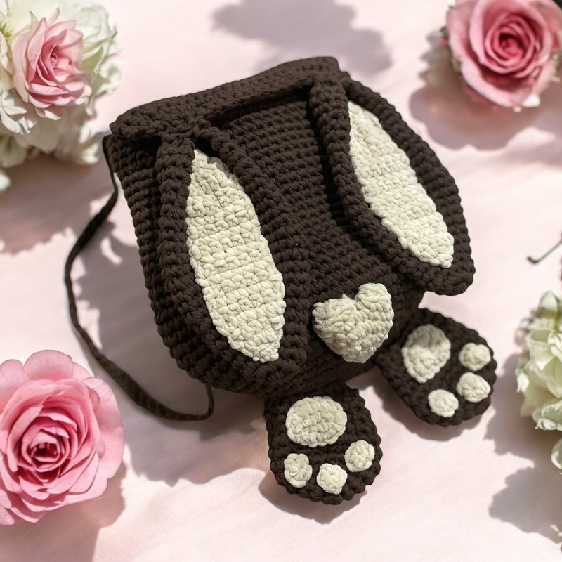 Der gehäkelte Hasenrucksack bietet Platz für kleine Schätze, Snacks oder Spielsachen und verbindet Spiel, Funktion und Handarbeit auf liebevolle Weise.