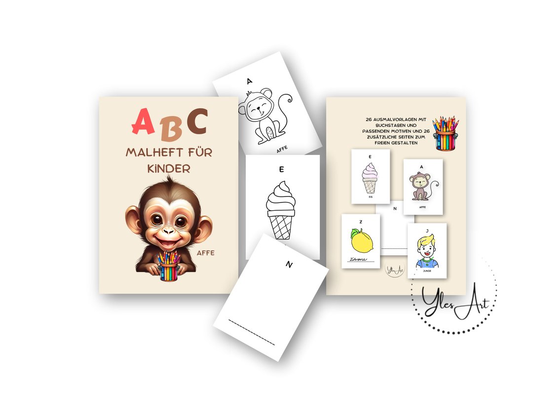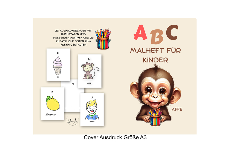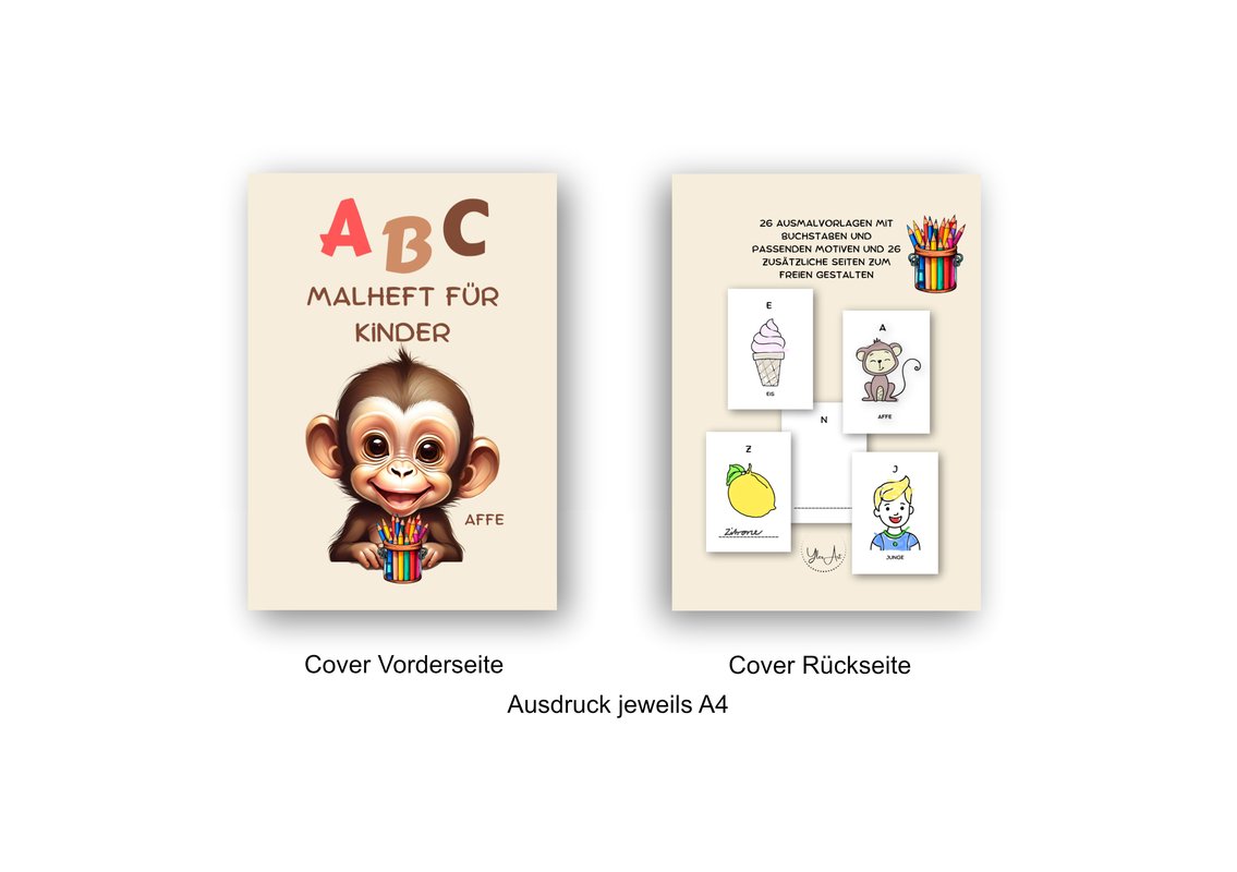 Dieses Malheft/Malvorlagen mit 52 Vorlagen ist perfekt für Kinder, um spielerisch das Alphabet zu lernen, Wörter zu entdecken und kreativ zu werden!