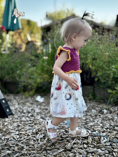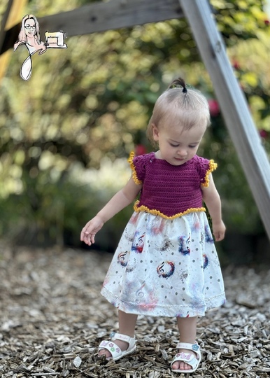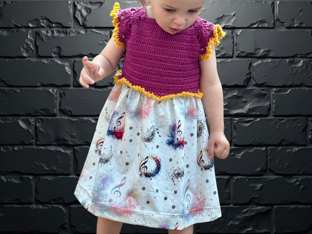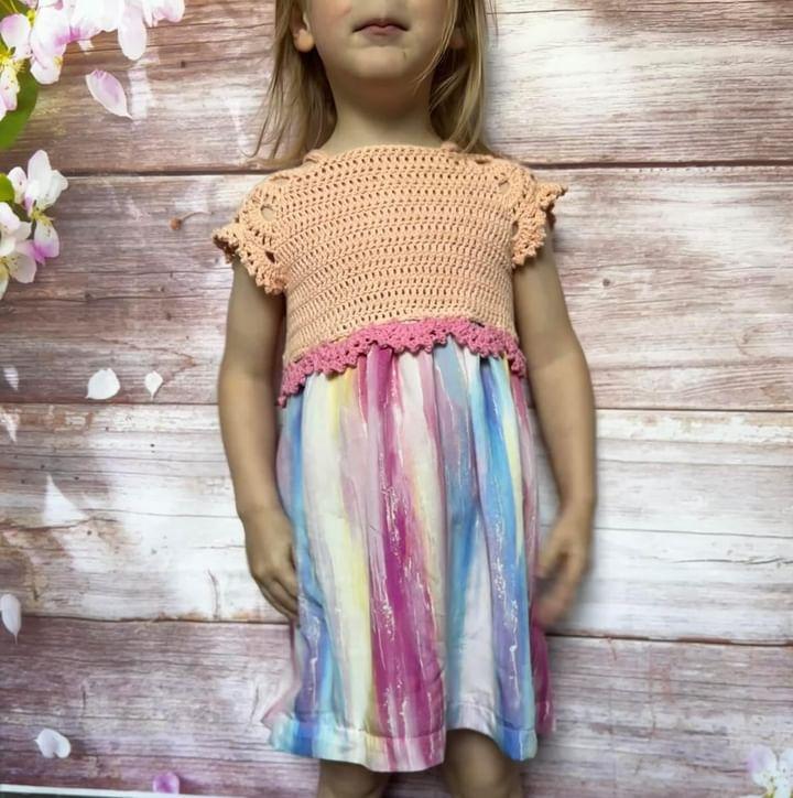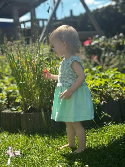 Einzigartiges Design, einfache Anfertigung: Mit einer geschickten Kombination aus Häkeln und Nähen entsteht ein besonderes Kleidungsstück, das deinem Kind ein Lächeln ins Gesicht zaubern wird. Das liebevoll gehäkelte Oberteil und der genähte Rockteil machen dieses Kleid zu etwas ganz Besonderem.