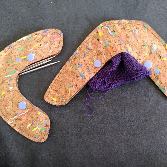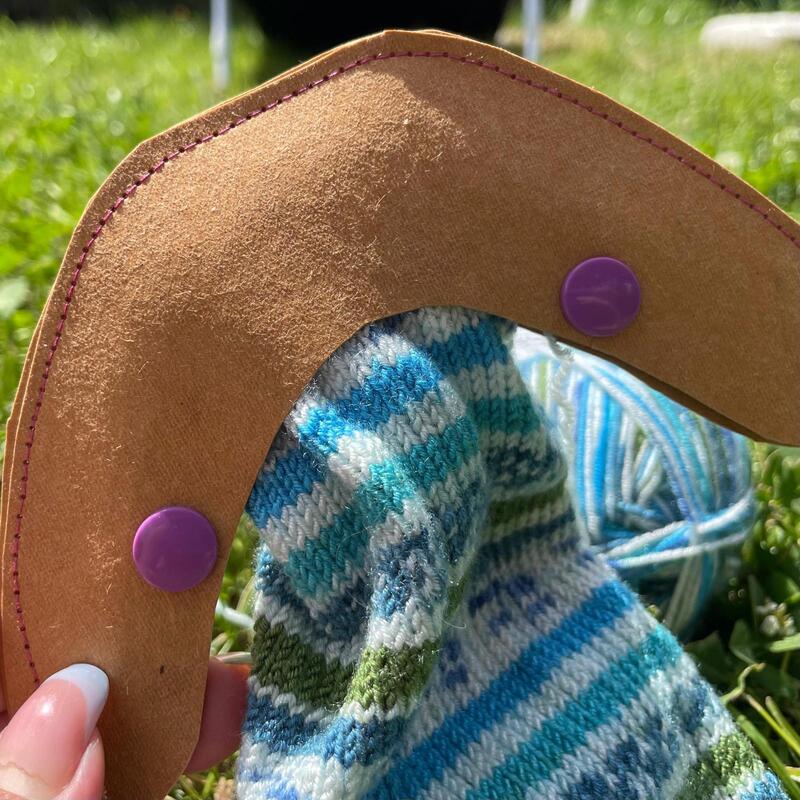 Es gibt sie in zwei Größen für die Nadeln bis 21 cm oder bis 30 cm Länge. Die kleine Größe eignet sich bis zur Nadelstärke 5, die große bis Nadelstärke 8.