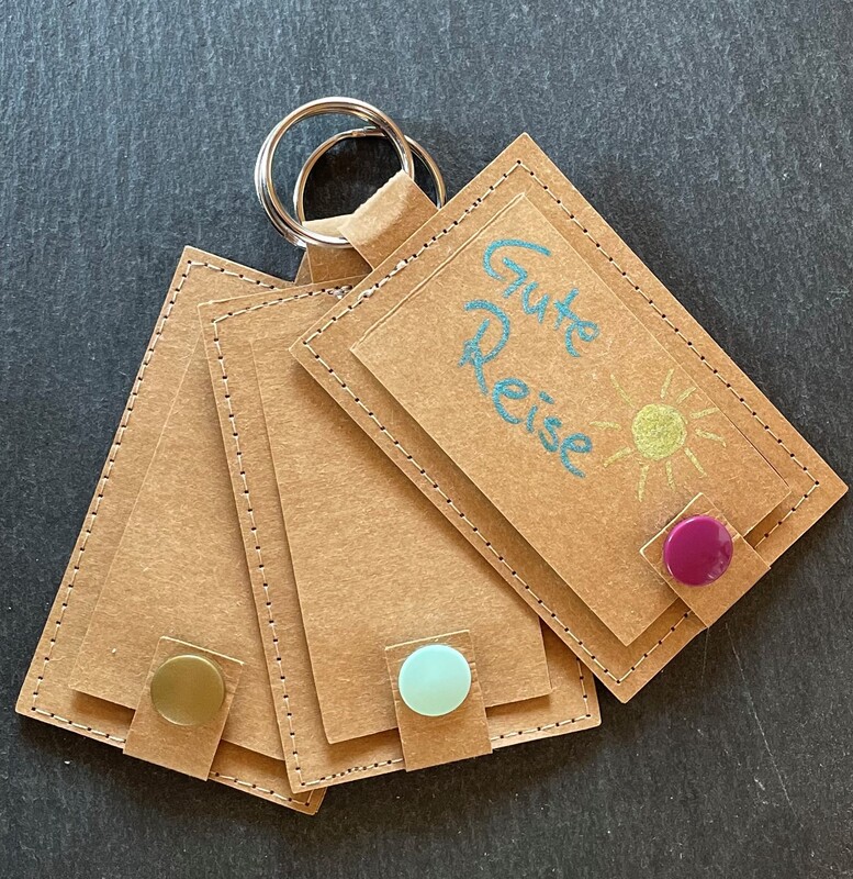 Der Kofferanhänger BeiPACKzettel ist genau das, was der Name sagt: ein Anhänger für den Koffer, so dass dein Koffer mit Namen und Adresse versehen werden kann, um Verwechslungen vorzubeugen. Da du deinen Kofferanhänger individuell gestalten kannst, erkennst du deinen Koffer z.B. am Flughafen leichter. Außerdem ist die Adresse durch eine Klappe unsichtbar und geschützt, die mit einem Kamsnap fest verschlossen wird. Deine Daten schreibst du mit wasserfestem Stift auf deinen Kofferanhänger, so dass du kein Schildchen oder Plastikfolie benötigst. Falls du doch eine Wechseloption mit Folie haben möchtest, findest du Ideen dazu.