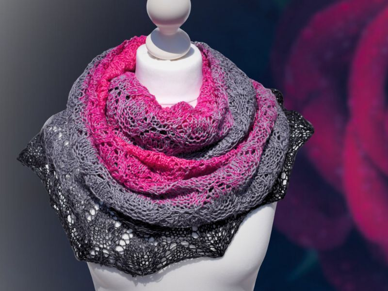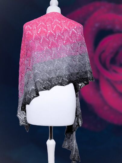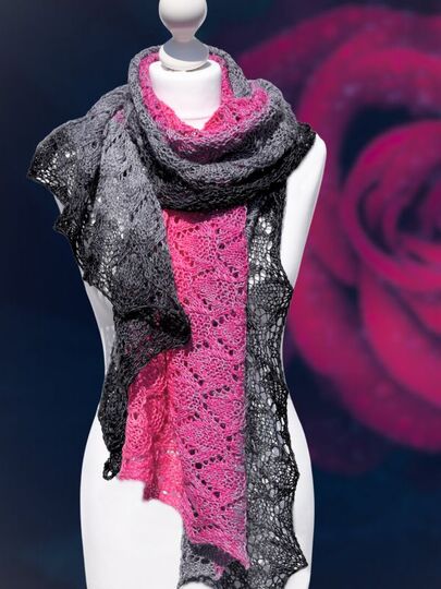 BLACK ROSE - ein filiganes Lochmuster in spektakulärer Bogenform. Mit der detaillierten Anleitung meisterst du jeden Schritt problemlos. Ideal für Strickerinnen mit fortgeschrittenen Strickkenntnissen. Mit dieser Anleitung schaffst du nicht nur ein elegantes Meisterwerk, sondern erlebst auch kreative Erfüllung, Entspannung und Stolz.