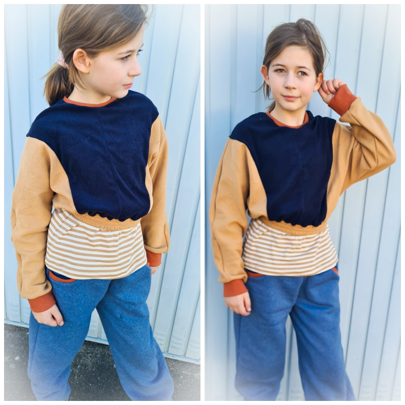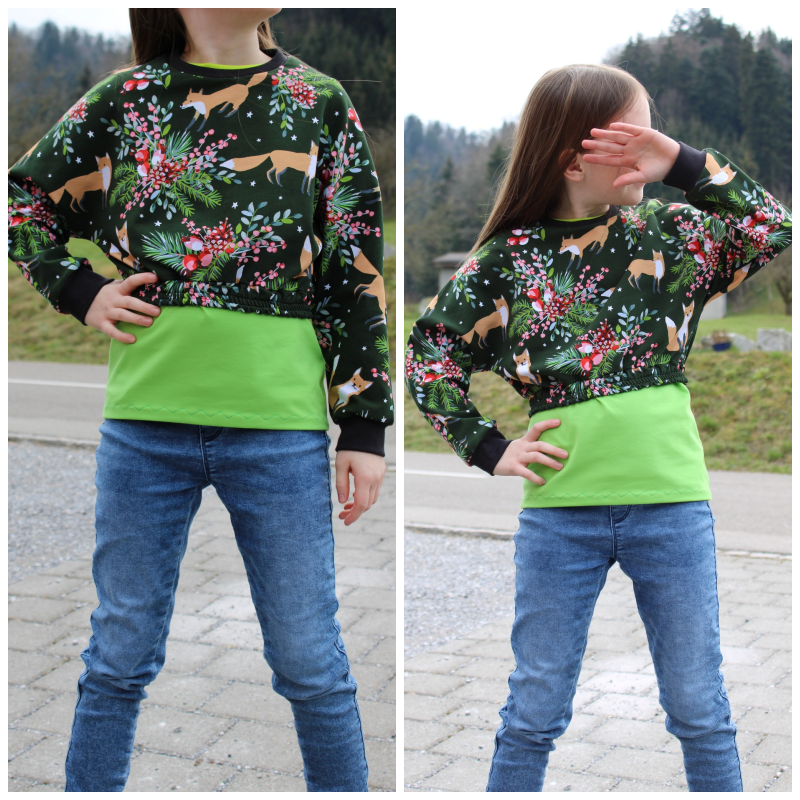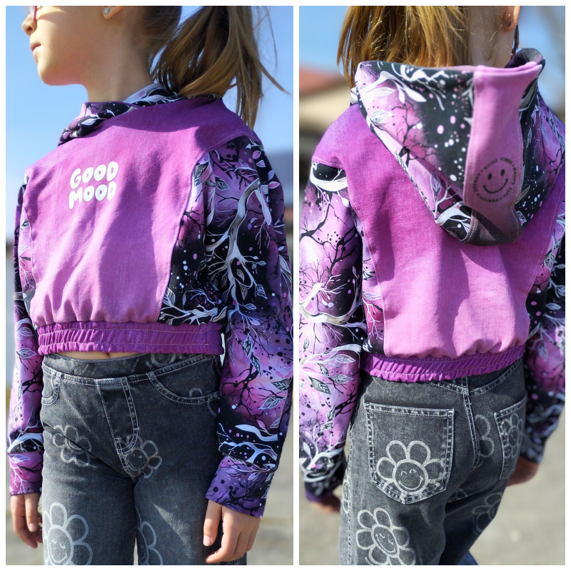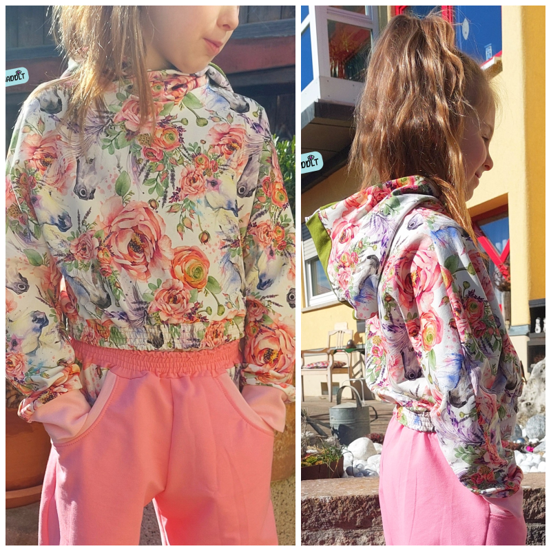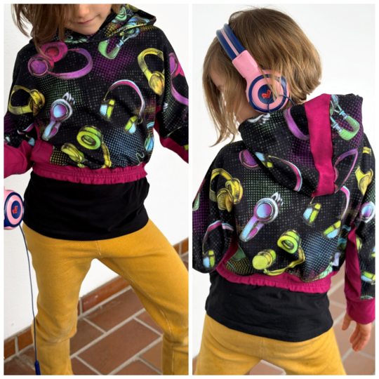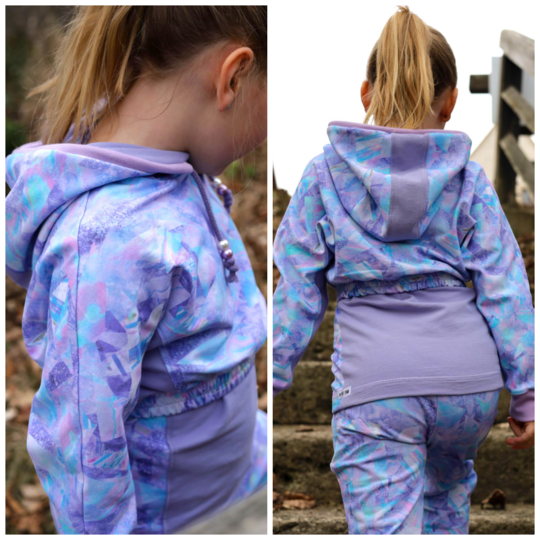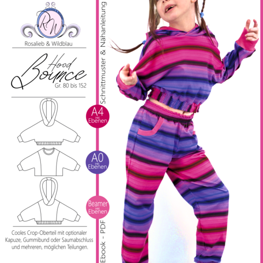 Das Schnittmuster Bounce Hood stammt aus der Serie für bequeme und lässige Kinder Sport- und Homewear. Es handelt sich dabei um ein lässiges Crop-Oberteil im Oversized-Look mit zwei verschiedenen Abschlussvarianten. Zur Wahl steht zum Beispiel der Abschluss mit Gummibund, der den Schnitt besonders cool wirken lässt und das Oberteil auch perfekt zum Kombinieren ausrüstet. Perfekt für Shirts, Tops oder Kleider, die unter dem Cropteilchengetragen werden können. Der ebenfalls enthaltene Saumabschluss führt zur einer weiteren Länge, und ändert die Optik des Oberteils komplett. Mit einem Saum abgeschlossen kommt der Oversized-Look richtig zur Geltung und wirkt besonders lässig. Auch hier kann man das Oberteil natürlich super zu anderen Oberteilen kombinieren. Damit ein Hood aus dem Crop-Oberteil wird, darf natürlich keine Kapuze fehlen! Diese ist mit einem Steg versehen und lädt zur Gestaltung mit unterschiedlichen Stoffen oder anderen Materialien ein. Neben der Kapuze kann das Oberteil auch mit Bündchen am Halsausschnitt genäht werden. Die Ärmelabschlüsse werden bei Bounce Hood mit einem Bündchen versehen.