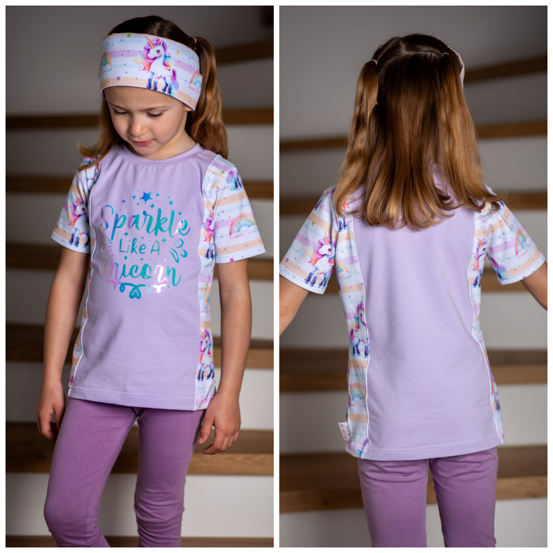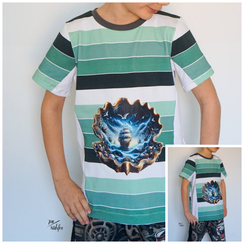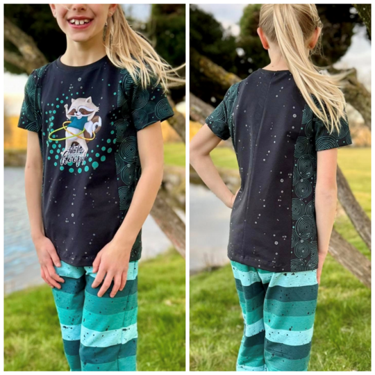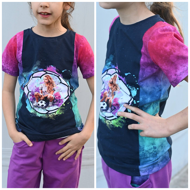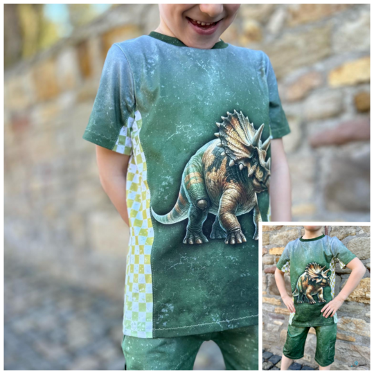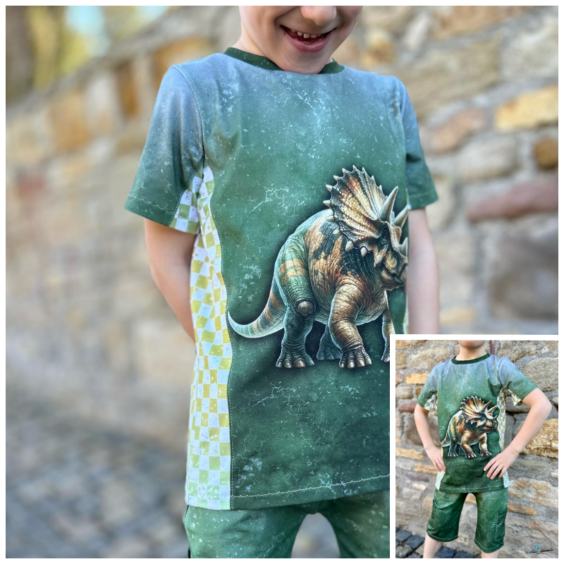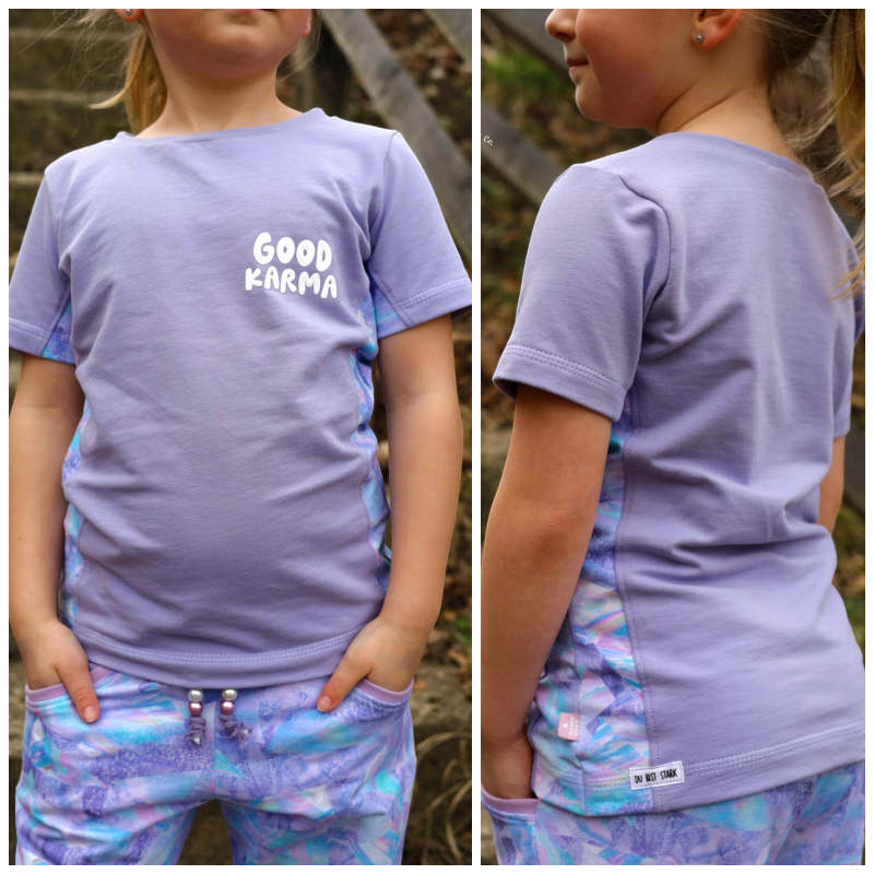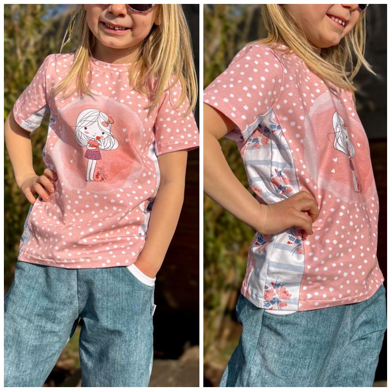 Das Schnittmuster Bounce Shirt stammt aus der Serie für bequeme und lässige Kinder Sport- und Homewear. Dieses schmal und gerade geschnittene Shirt bietet dir zwei verschiedene Teilungsvarianten, mit denen du immer wieder neue Looks erstellen kannst. Das Shirt kann mit kurzen oder langen, gesäumten Ärmeln genäht werden. Neben der geraden, schmalen Form gibt es eine weitere, optionale Linie mit einem minimal aus- gestellenten Abschluss, der auch für Jungs prima nutzbar ist. Für Mädels kann zusätzlich eine taillierte Form gewählt werden. Für Kids mit etwas breiteren Schultern, gibt es im Schnittmuster ab Größe 122 einen zusätzlichen, optionalen Bruch. Das Shirt kann für einfache, bequeme Outfits, als Ergänzung für Sportsets oder zum Beispiel für Panels genutzt werden. Die Teilungen können auch prima für Tüddelelemente genutzt werden oder sehen mit Covernähten geschmückt, besonders cool aus. Am Halsausschnitt wird ein Bündchen angebracht, während alle Abschlüsse gesäumt werden.