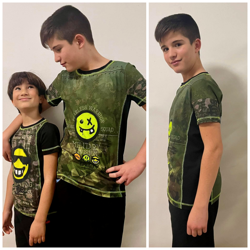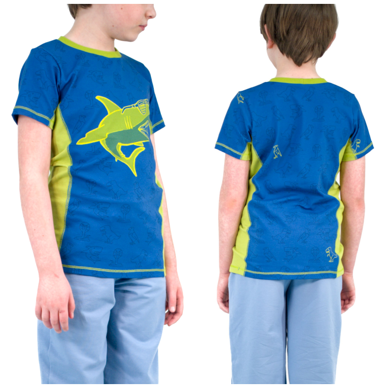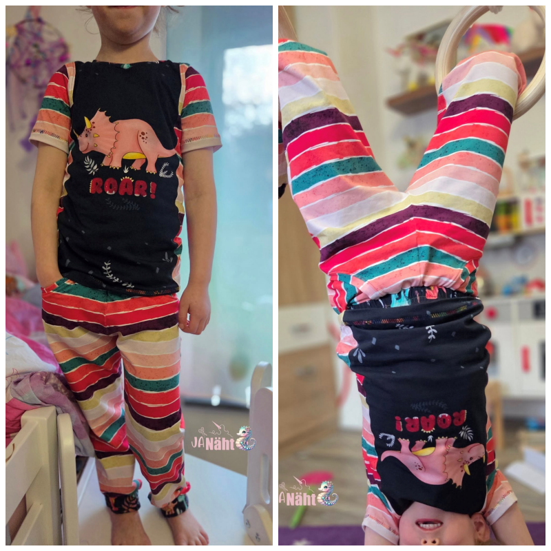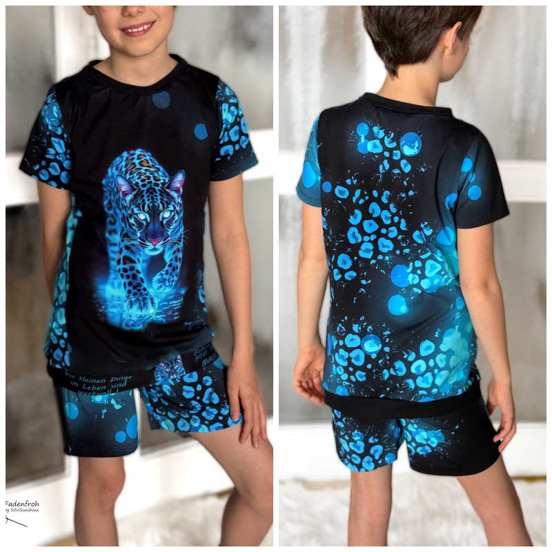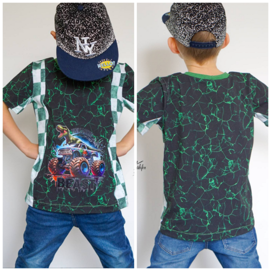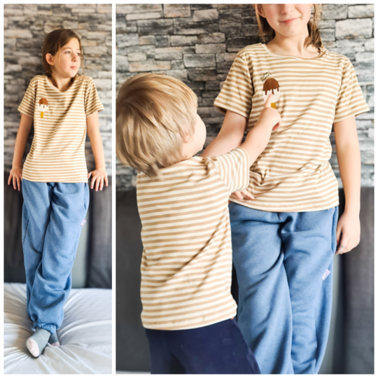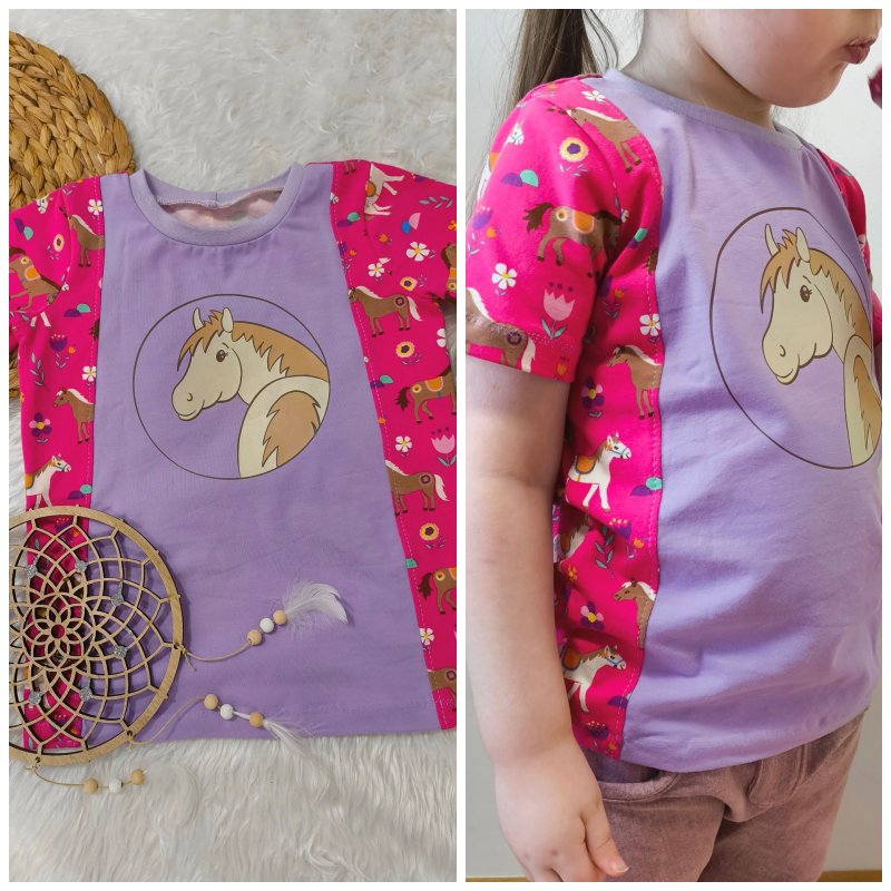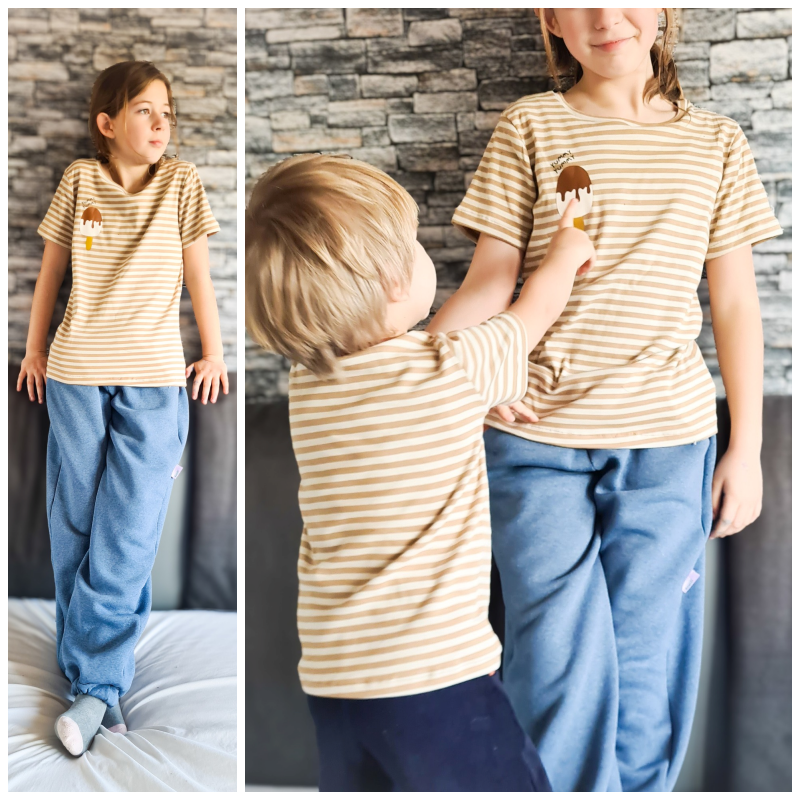 Das Schnittmuster Bounce Shirt stammt aus der Serie für bequeme und lässige Kinder Sport- und Homewear. Dieses schmal und gerade geschnittene Shirt bietet dir zwei verschiedene Teilungsvarianten, mit denen du immer wieder neue Looks erstellen kannst. Das Shirt kann mit kurzen oder langen, gesäumten Ärmeln genäht werden. Neben der geraden, schmalen Form gibt es eine weitere, optionale Linie mit einem minimal aus- gestellenten Abschluss, der auch für Jungs prima nutzbar ist. Für Mädels kann zusätzlich eine taillierte Form gewählt werden. Für Kids mit etwas breiteren Schultern, gibt es im Schnittmuster ab Größe 122 einen zusätzlichen, optionalen Bruch. Das Shirt kann für einfache, bequeme Outfits, als Ergänzung für Sportsets oder zum Beispiel für Panels genutzt werden. Die Teilungen können auch prima für Tüddelelemente genutzt werden oder sehen mit Covernähten geschmückt, besonders cool aus. Am Halsausschnitt wird ein Bündchen angebracht, während alle Abschlüsse gesäumt werden.