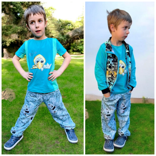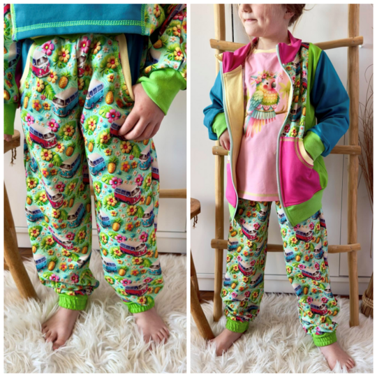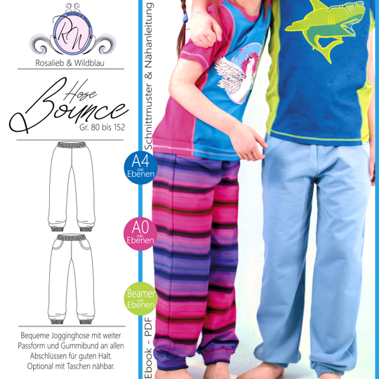 Das Schnittmuster Bounce Hose stammt aus der Serie für bequeme und lässige Kinder Sport- und Homewear. Es handelt sich um eine lockere und bequeme Hose für dickere Stoffe wie etwa French Terry. Für guten Halt bei sportlichen Aktivitäten sorgt ein Gummibund am Bauchabschluss und den Beinabschlüssen. Optional kann die Hose mit Taschen genäht werden. Das Schnittmuster ist einfach und schnell umsetzbar, sodass es nicht nur beim Nähen Freude bereitet sondern auch später beim Sport oder an entspannten Tagen :)!