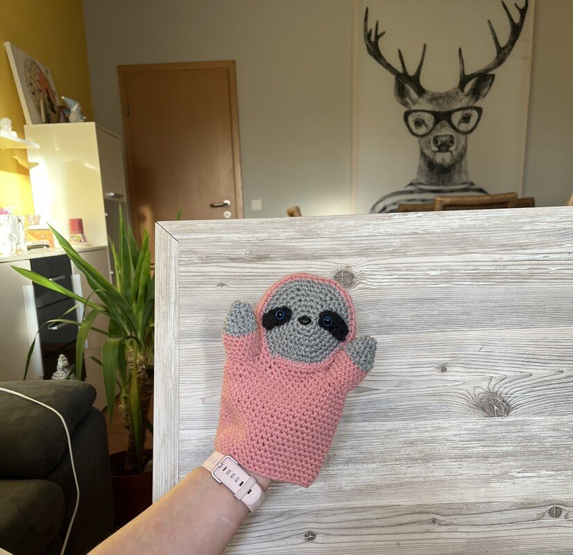 Dieses süße Faultier wird sofort begeistern, es ist eine sehr knuffige Handpuppe, mit der man über Stunden Zeit verbringen kann. Sie ist so erstellt, dass sie quasi mitwachsen kann, die Kinderhand, aber auch eine Hand von einer erwachsenen Person passt hinein.