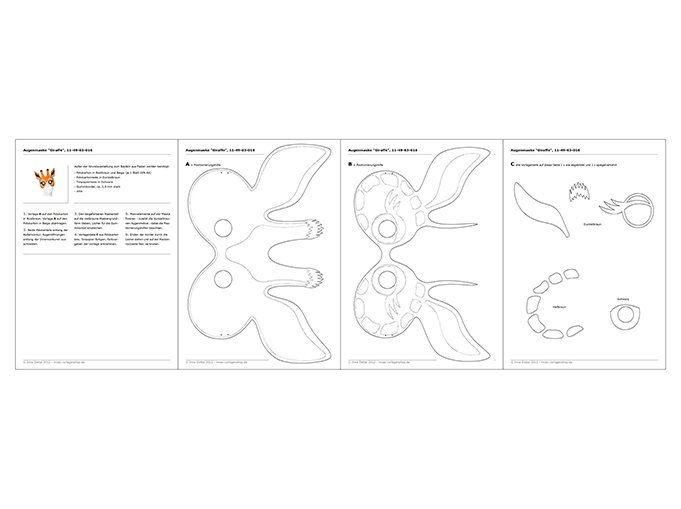 Diese Maske passt eigentlich jedem Kind. Du kannst den Sitz der Maske perfektionieren, indem du erst die ausgeschnittene Vorlage A auf dem Gesicht testest und dann alle Vorlagenteile entsprechend vergrößert oder verkleinert kopierst.