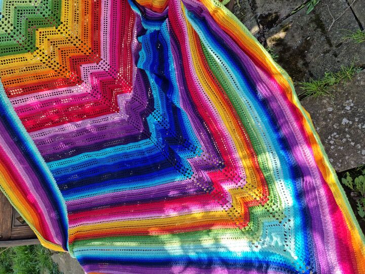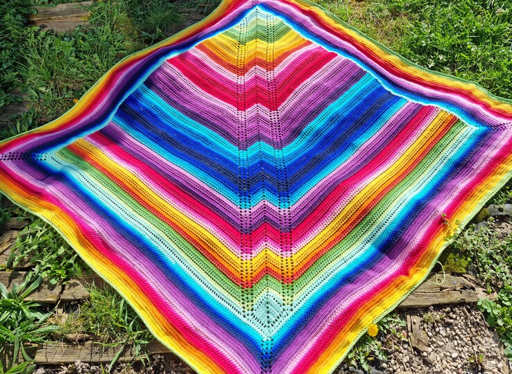 Gesamt Verbrauch bei 3-fädigem Garn 4000m ~ 800g ca. 150cm x 150cm