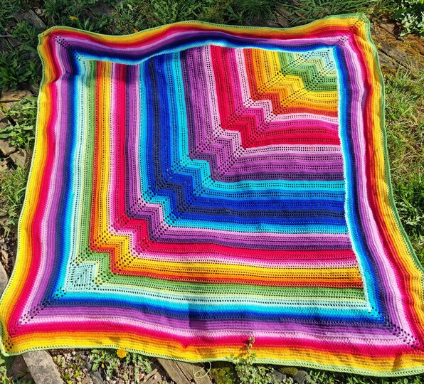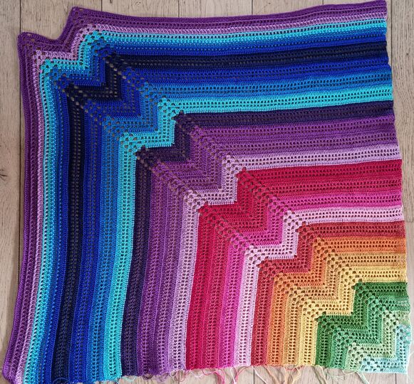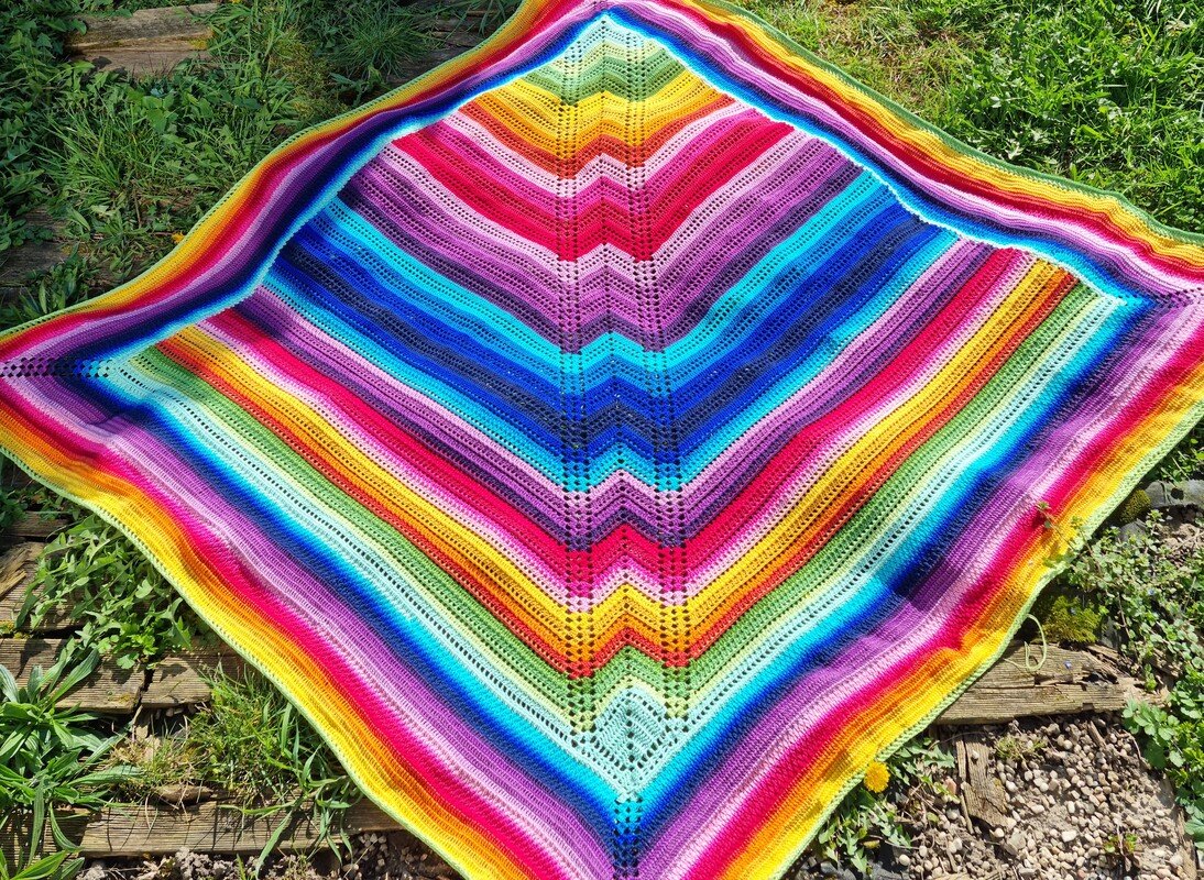 Bei 3-fädigem Garn und NS 3,0 wurde das Zentrum mit 120 Reihen ca. 110cm x