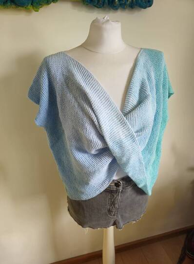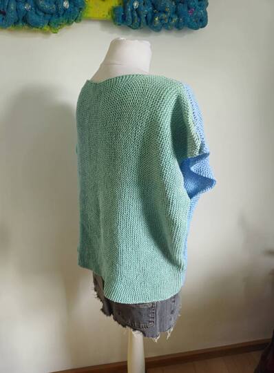 Quer gestrickt am Stück mit einem Flip ist dieses Oberteil eine tolle Bereicherung für Deine Garderobe.