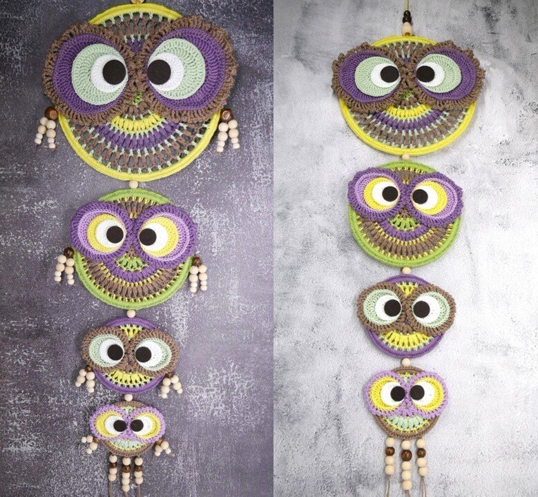 Traumfänger mit bunten Eulen in 4 verschiedenen Größen.