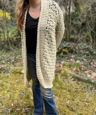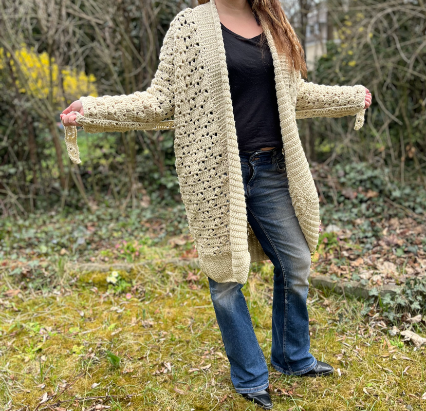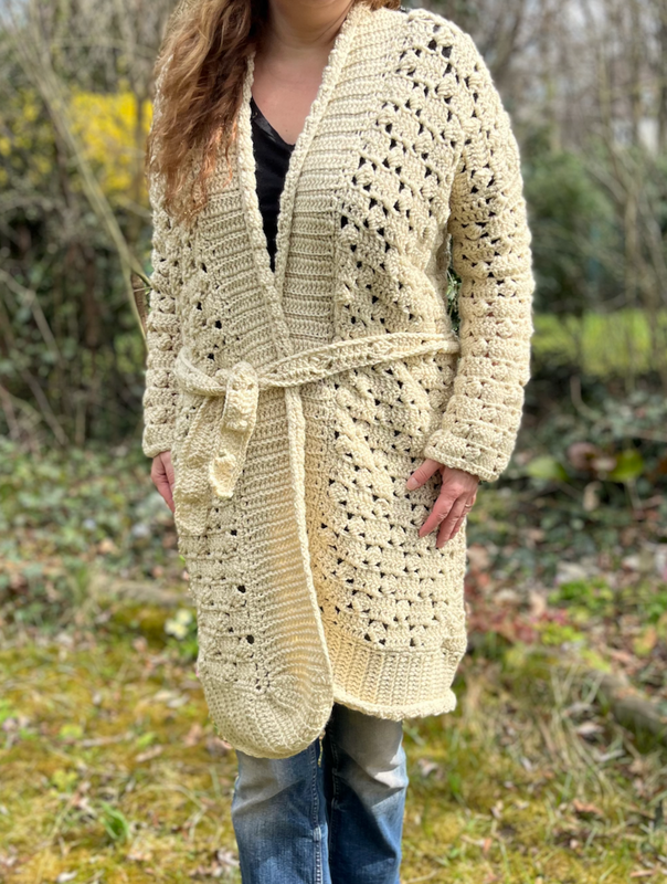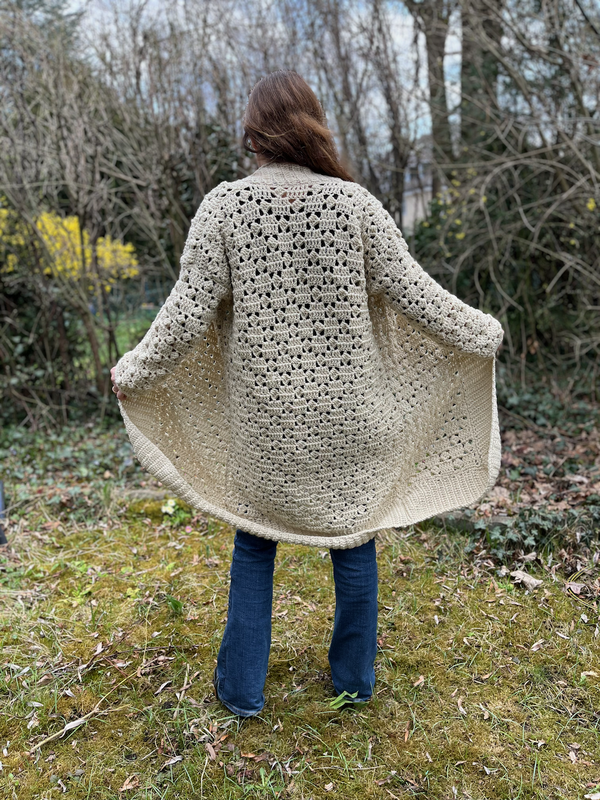 Es werden keine Zu- oder Abnahmen gemacht und kannst du die angebenen Maschen häkeln, ist der Mantel anfängerfreundlich. Das Muster wird detialliert erklärt.