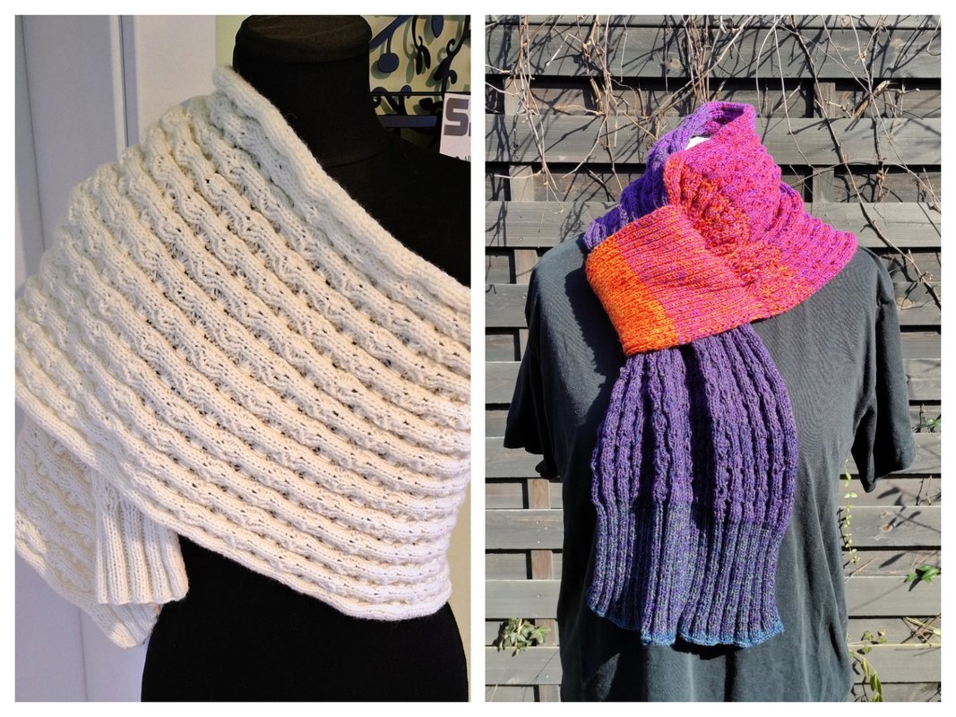 LUCALA wird winterlich mit etwas dickerem weichen Garn oder sommerlich mit Baumwolle, Lace, Mischgarn oder Leinengarn. Flauschgarn ist eher weniger geeignet für das Muster, Bobbel aus Mischgarn oder Modal sind hingegen sehr gut geeignet. LUCALA wirkt einfarbig, meliert, bunt oder mit Farbverlauf.