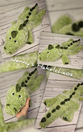 Die Anleitung ist detailliert beschrieben und zum besseren Verständnis mit Bildern unterlegt. Der Schmusedino ist für Fortgeschrittene häkler geeignet.
