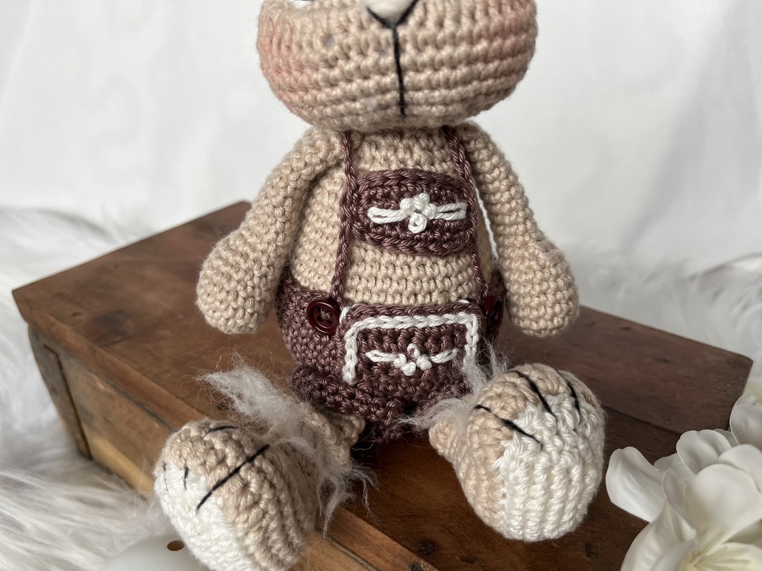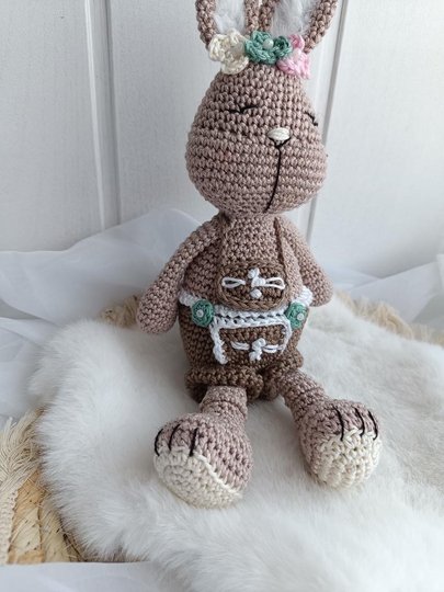 Du erhältst eine liebevoll gestaltete Häkelanleitung zur Herstellung der Lederhose für Hase "Honey".