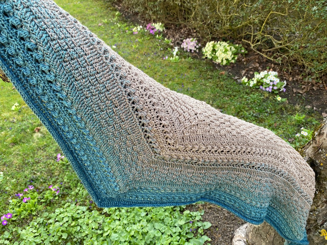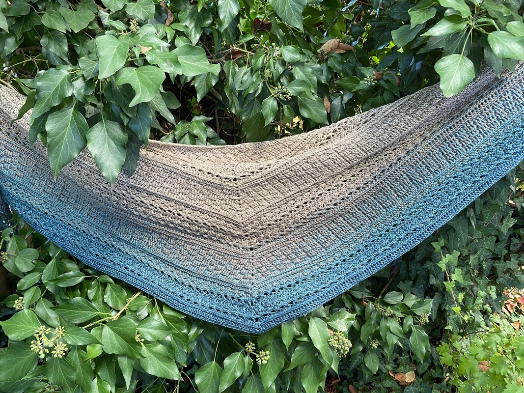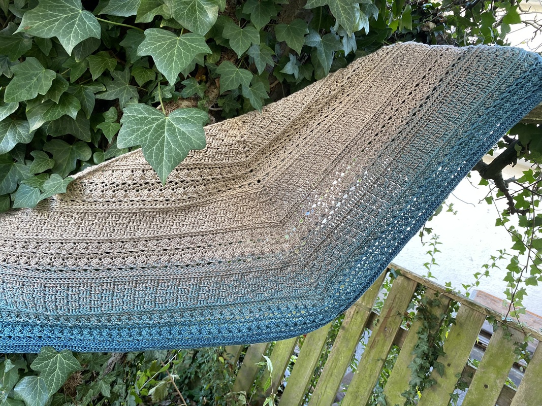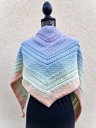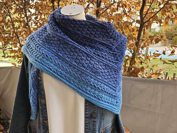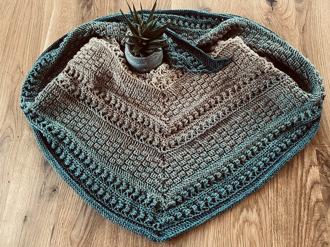 Mad Magic ist ein eher dichtes Dreieckstuch mit flacher Form (also nicht so tiefer Spitze). Wenn du dichte Muster magst und gerne Stäbchen und Reliefstäbchen häkelst, ist diese Anleitung für dich genau richtig .
