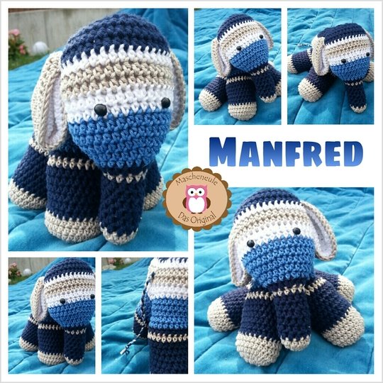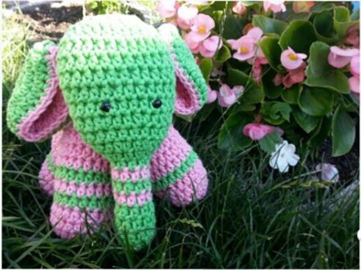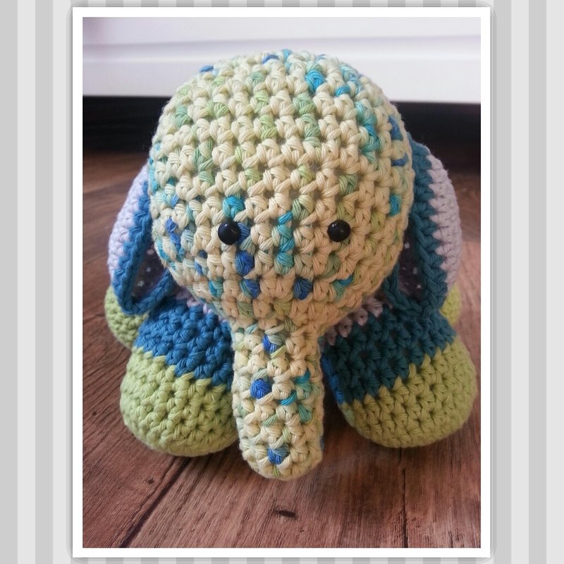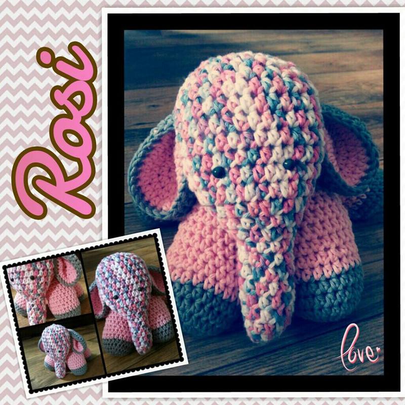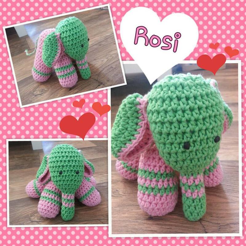 Hier kommt Rosi, die gemütliche Elefanten-Dame. Rosi liegt besonders gern im Bett und hat es niemals eilig. Häkel auch du dir deine Rosi!