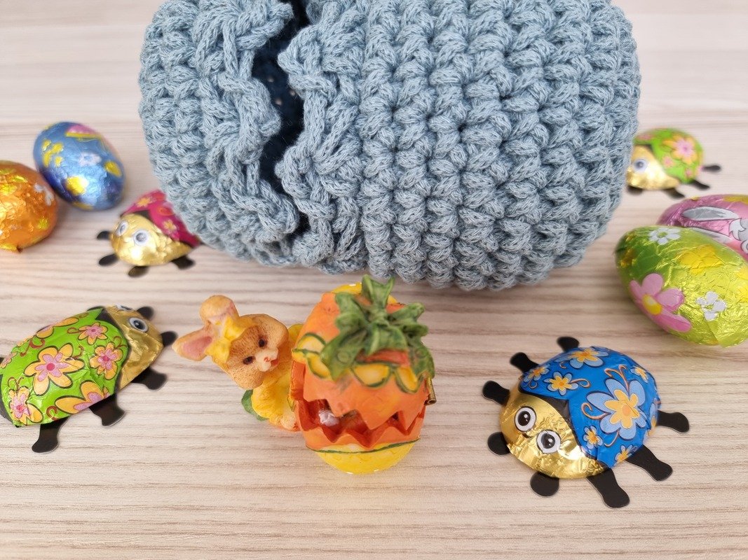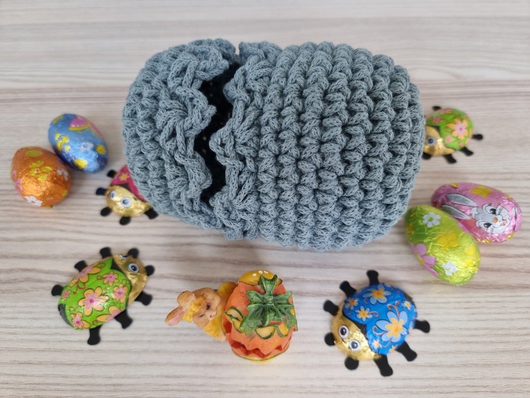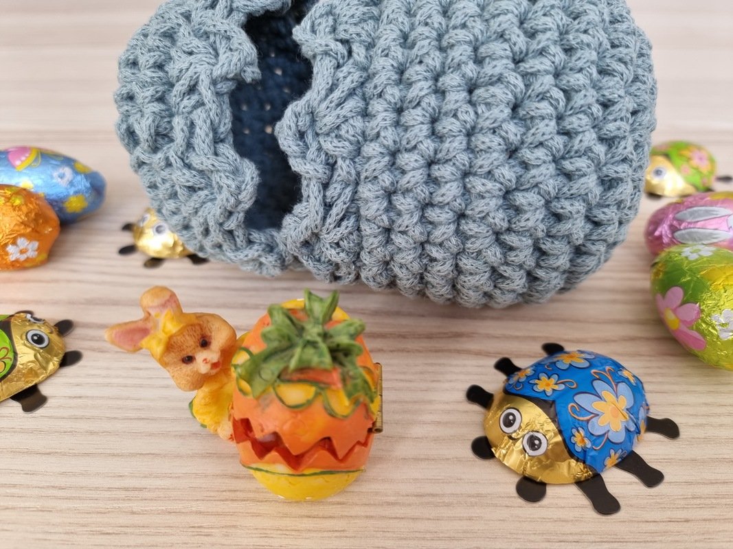Ich zeigen Dir in dieser Anleitung, wie Du hübsche Körbchen "Dino-Ei" pünktlich zum Osterfest ganz einfach selber häkeln kannst.
