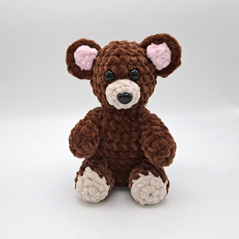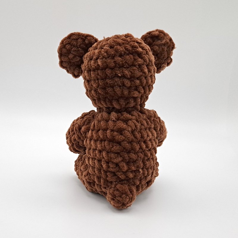Mit einem Chunky Chenille Garn (100g / 120m) und einer Häkelnadel Nr. 4,5 wird der Bär ca. 18 cm hoch.
