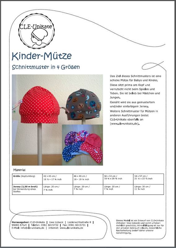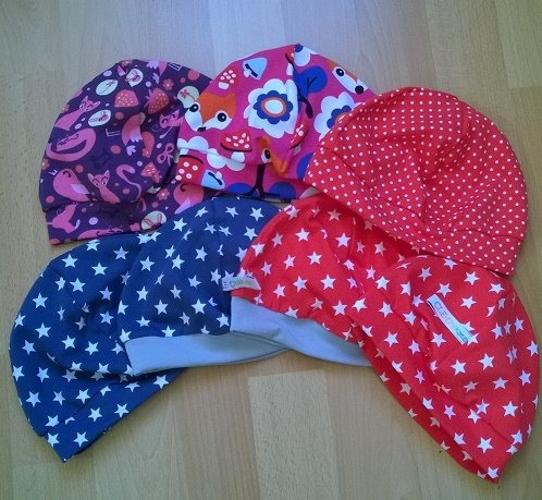 Das Ziel dieses Schnittmusters ist eine schicke Mütze für Babys und Kinder. Diese sitzt prima am Kopf und verrutscht nicht beim Spielen und Toben. Sie ist belieb bei Mädchen und Jungen. Genäht wird sie aus gemustertem und/oder einfarbigem Jersey.