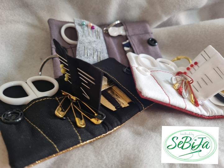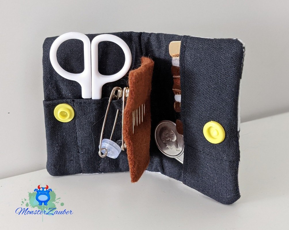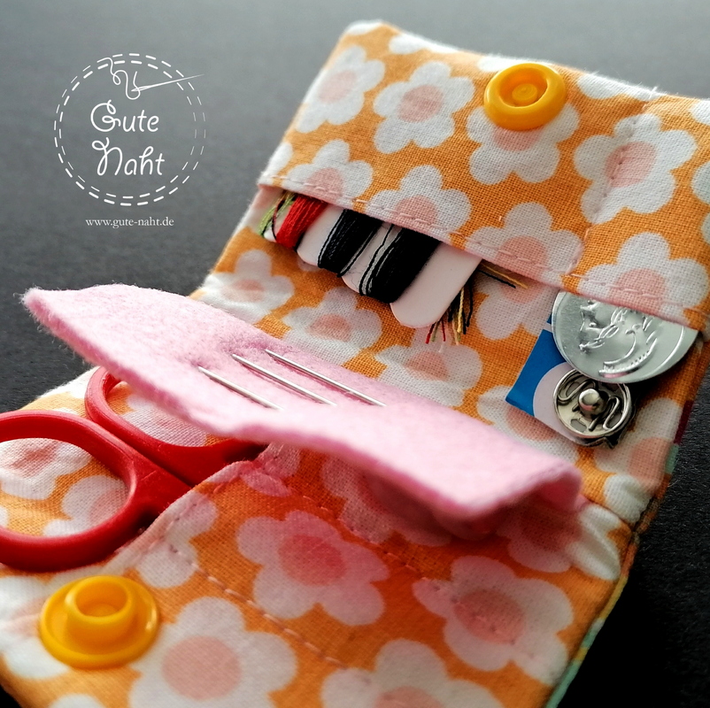 Das Nähetui ist so klein wie möglich (5x7cm), um alles unterzubringen, was in diesen kleinen Reisenähsetboxen ist, die man in vielen Geschäften kaufen kann. So kannst du dein Nähset stilecht verpacken und es ist so winzig, dass es in jedes Gepäck und in jede Handtasche passt. Natürlich kannst du auch andere Nähzutaten darin verpacken, wichtig ist nur, dass die Schere nicht größer als 6,5 cm ist.