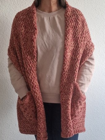 Nach dieser Anleitung kannst Du dir einen absolut hippen und modischen Taschenschal stricken. Er wird ganz einfach wie eine Stola umgelegt, aber durch die Taschen ist er der ideale Begleiter für einen kühleren Abend, wenn Du unterwegs bist und keine Handtasche mitnehmen möchtest oder für den morgendlichen Spaziergang.